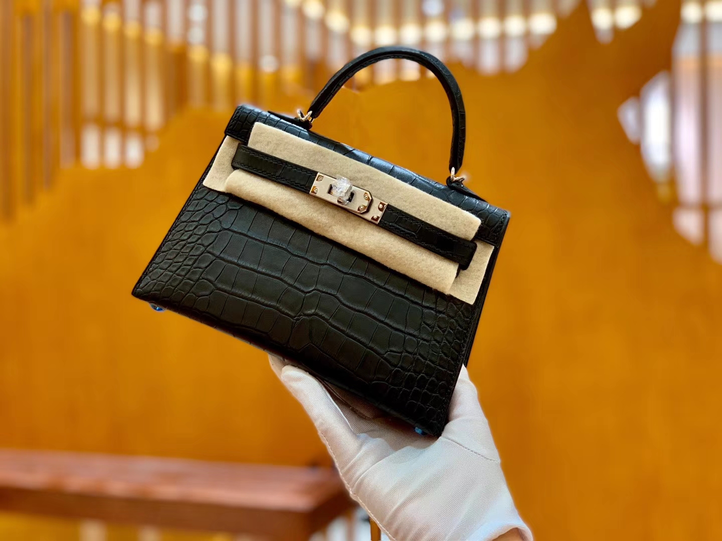 Hermès(爱马仕)迷你2代 19cm 黑银 美洲雾面鳄鱼皮 珍贵方块印 2020年1月10日 0 【鳄鱼世家】www.Eyubao.com Mini Kelly 2 Mini Kelly 迷你凯莉 品牌:Hermès(爱马仕);类别:Mini Kelly迷你凯莉包;颜色:黑银;材质:美洲雾面鳄鱼皮;等级:顶级;附件:全套包装礼盒;尺寸:19cm;功能:手提单肩包