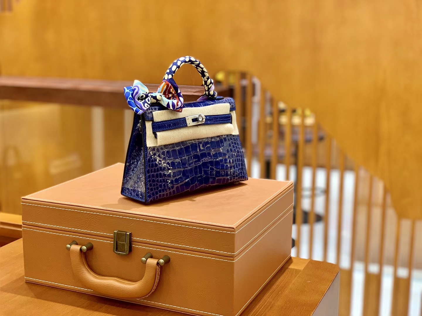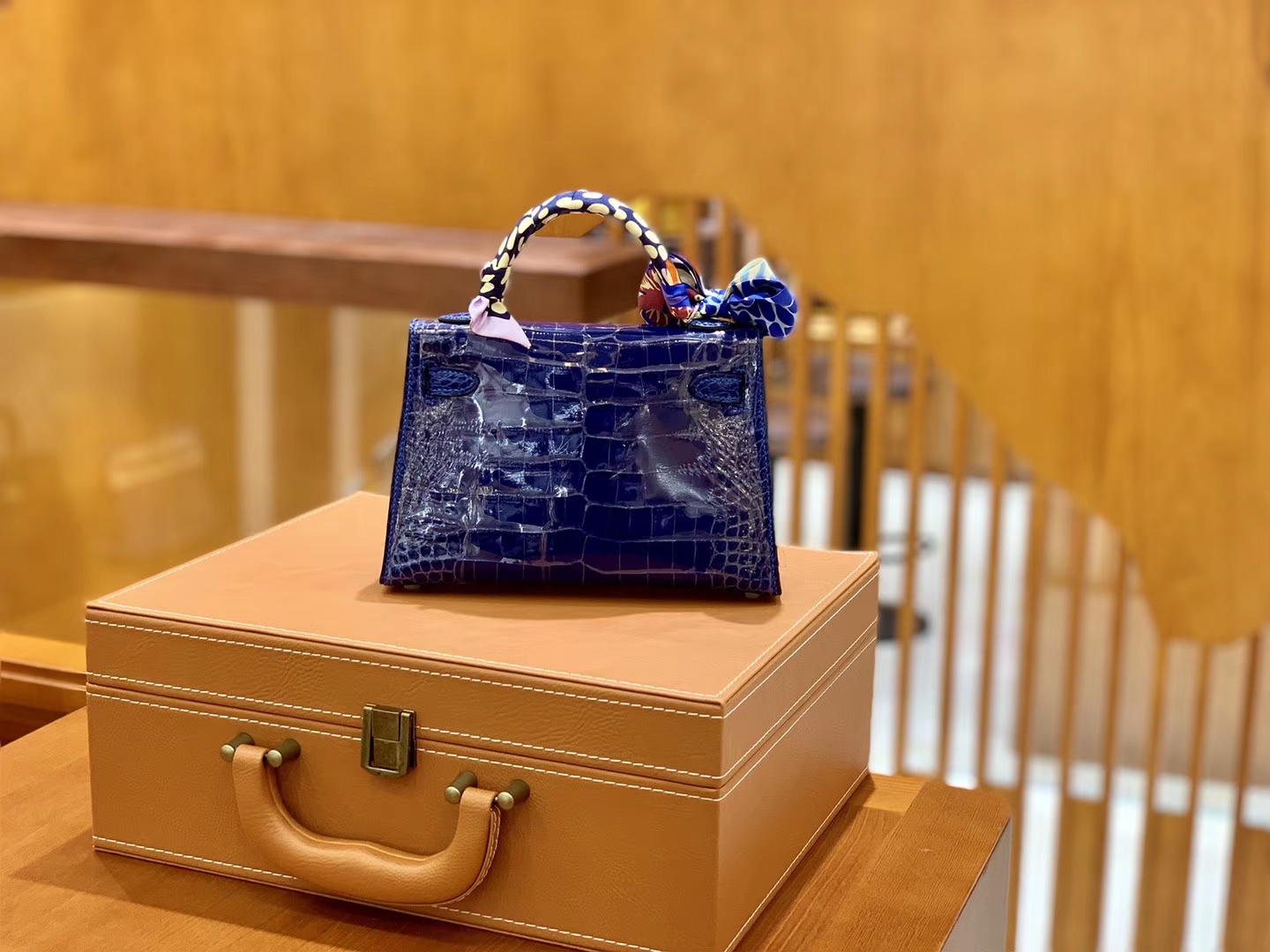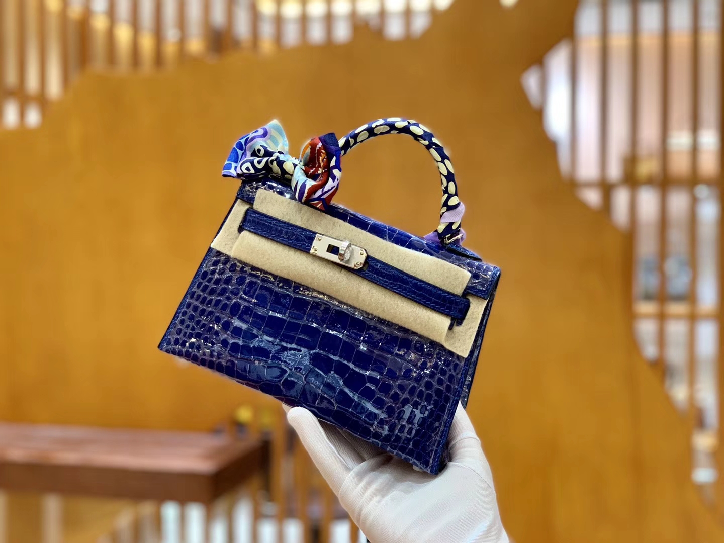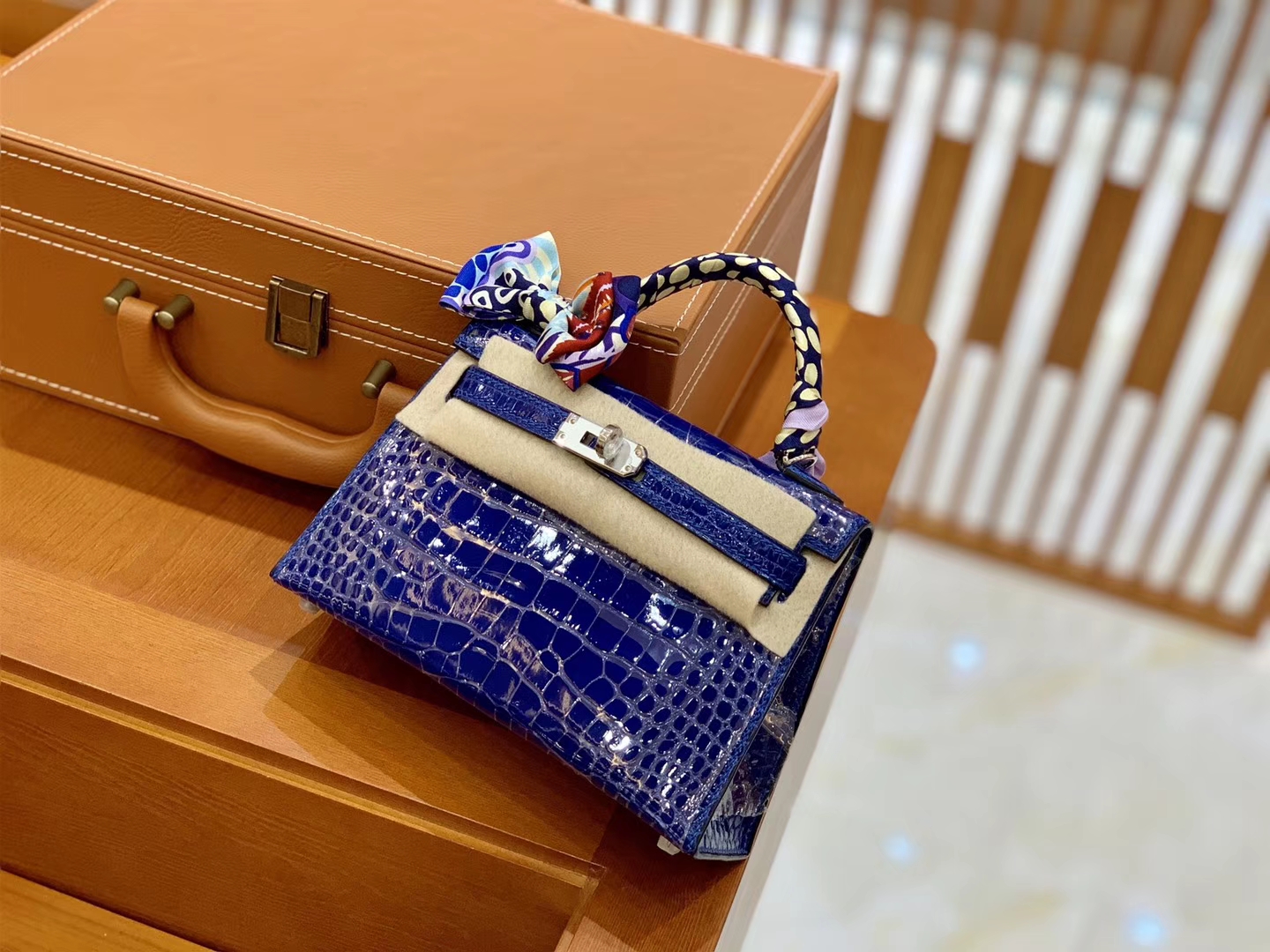 Hermès(爱马仕)迷你2代 19cm 琉璃蓝 雾面鳄鱼皮 珍贵方块印 2020年1月10日 0 【鳄鱼世家】www.Eyubao.com Mini Kelly 2 Mini Kelly 迷你凯莉 品牌:Hermès(爱马仕);类别:Mini Kelly迷你凯莉包;颜色:琉璃蓝;材质:美洲雾面鳄鱼皮;等级:顶级;附件:全套包装礼盒;尺寸:19cm;功能:手提单肩包