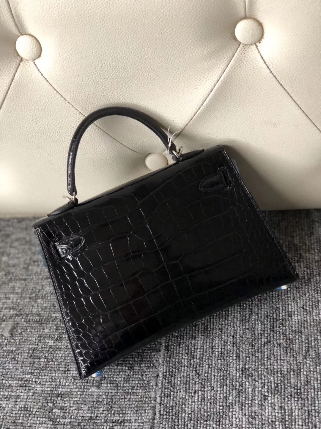 Hermès(爱马仕)Minikelly ll 亮面鳄鱼 ck89 黑色 noir 银扣 顶级手缝 现货 2020年1月13日 0 【鳄鱼世家】www.Eyubao.com Mini Kelly 2 Mini Kelly 迷你凯莉 品牌:Hermès(爱马仕);类别:Mini Kelly迷你凯莉包;颜色:黑色;材质:亮面鳄鱼;等级:顶级;附件:全套包装礼盒;尺寸:19cm;功能:手提单肩包