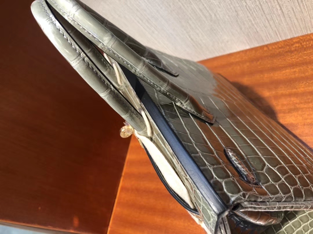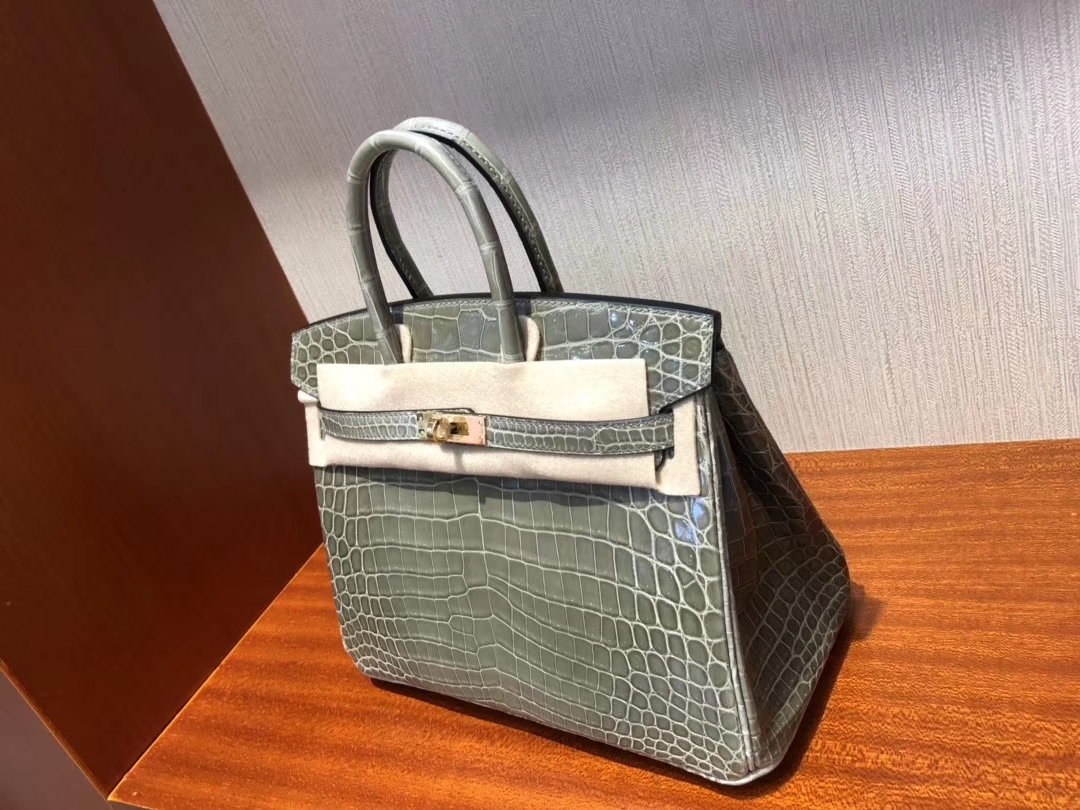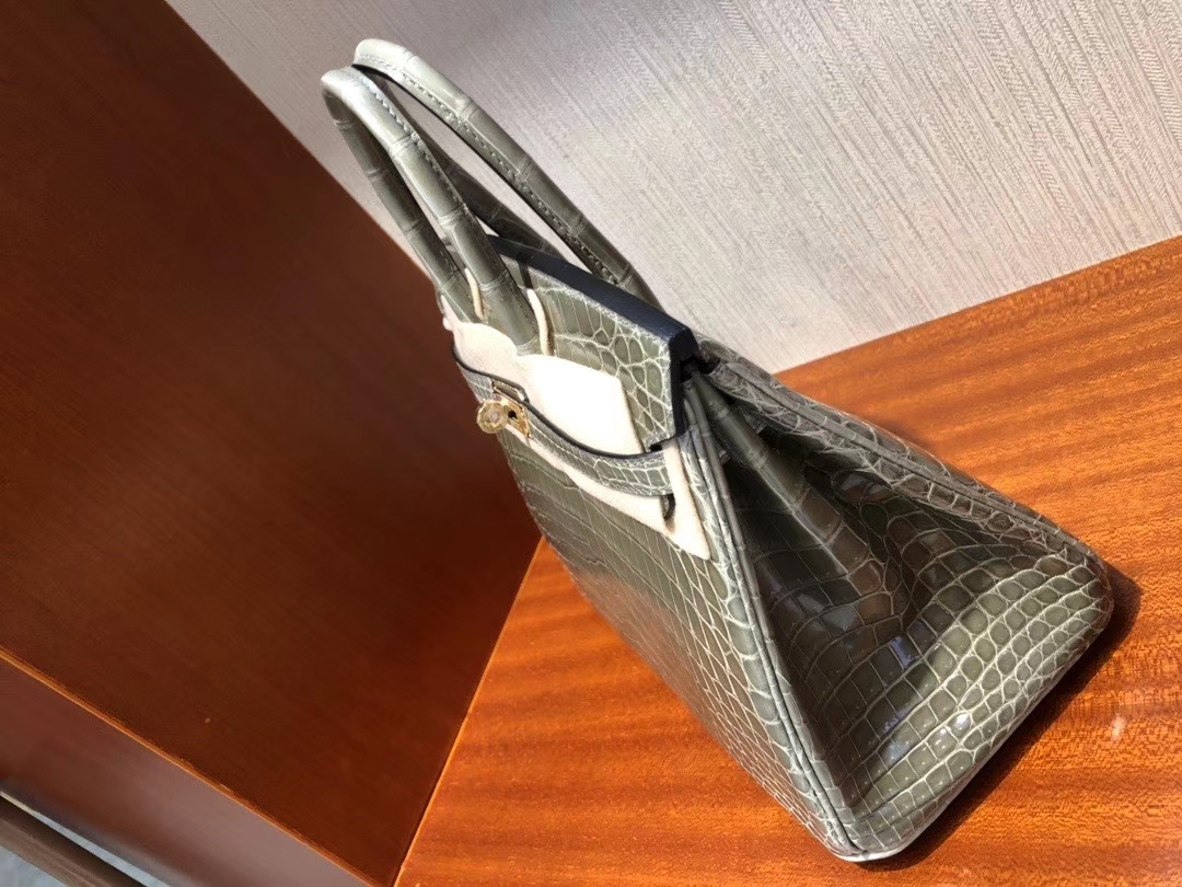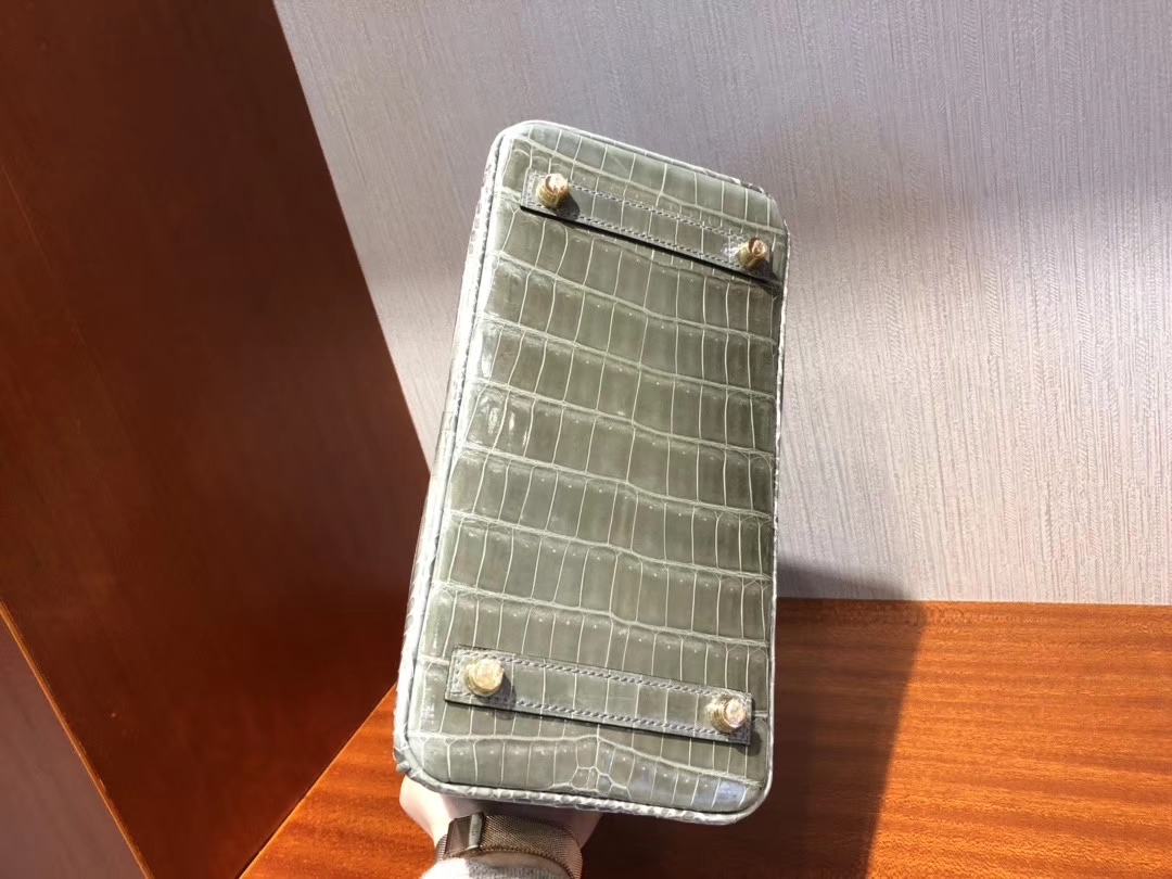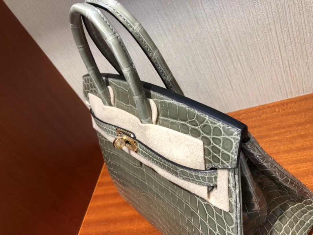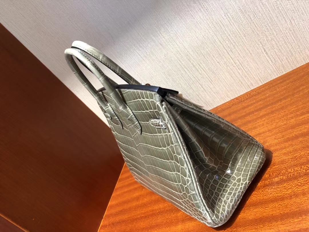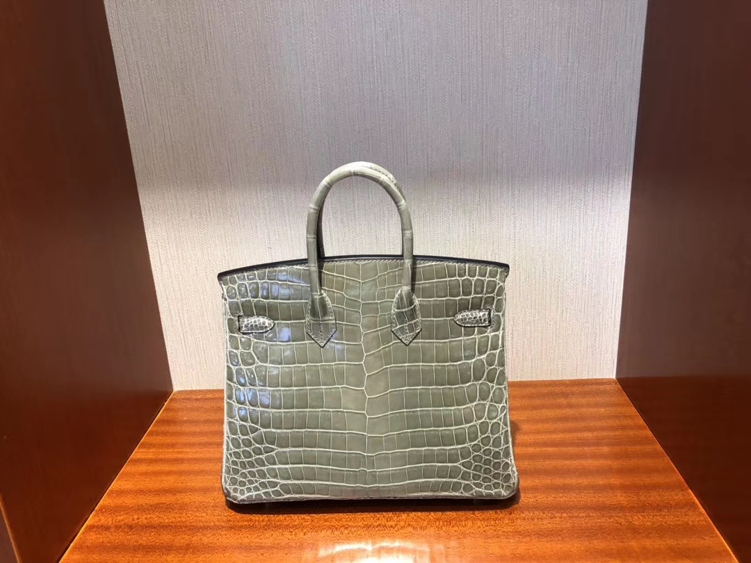 Hermès(爱马仕)Birkin 铂金包 Crocodile shiny 亮面鳄鱼 ck81 斑鸠灰 金扣 25cm 2020年1月14日 0 【鳄鱼世家】www.Eyubao.com Birkin 25 Birkin 铂金包 品牌:Hermès(爱马仕);类别:Birkin 铂金包;颜色:斑鸠灰;材质:亮面鳄鱼皮;等级:顶级;附件:全套包装礼盒;尺寸:25cm;功能:手提单肩包