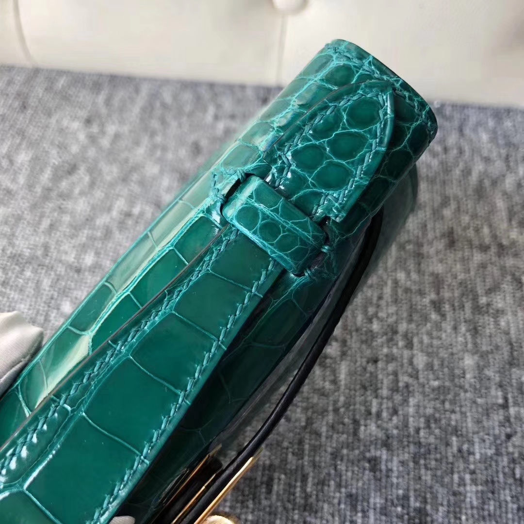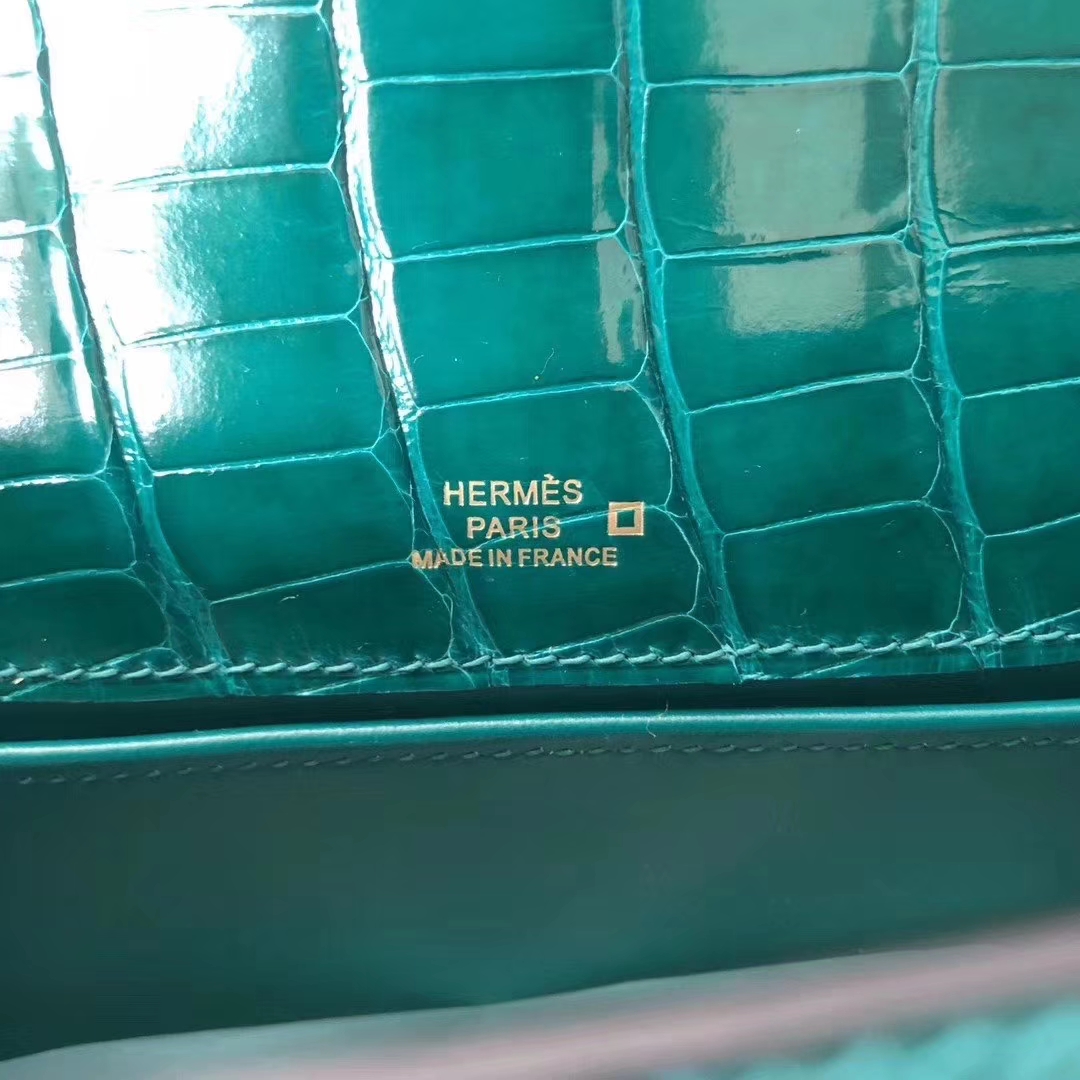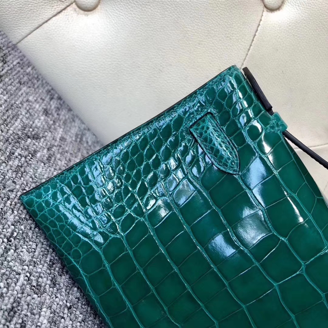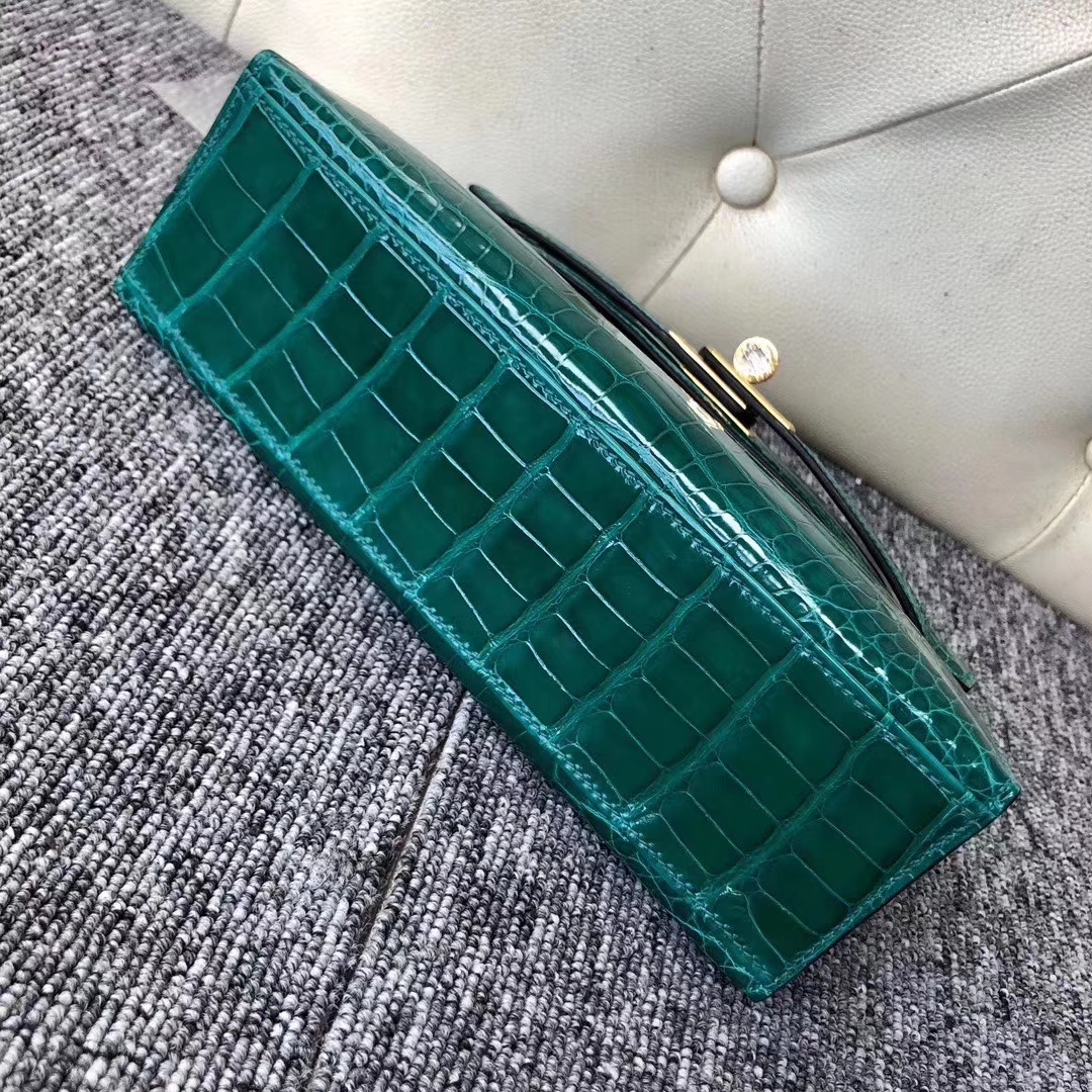 Hermès(爱马仕)Mini Kelly Pochette 22cm 亮面方块 美洲鳄鱼 6Q翡翠绿 Vert Emeraude 金扣