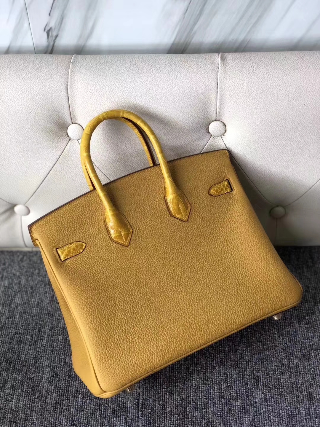 Hermès(爱马仕)Birkin 25cm touch 系列 9D 琥珀黄 Ambre 鳄鱼 金扣 现货 2020年1月14日 0 【鳄鱼世家】www.Eyubao.com Birkin 25 Birkin 铂金包 品牌:Hermès(爱马仕);类别:Birkin 铂金包;颜色:琥珀黄;材质:亮面鳄鱼皮;等级:顶级;附件:全套包装礼盒;尺寸:25cm;功能:手提单肩包