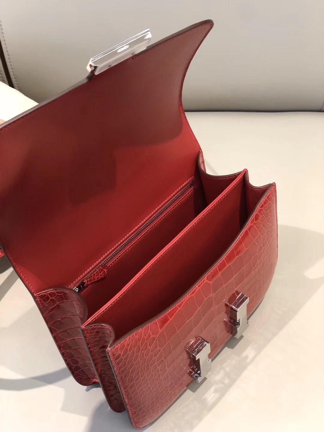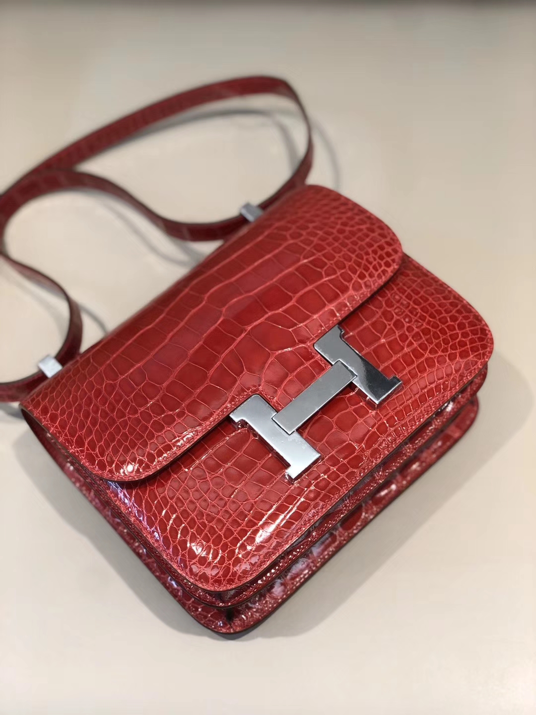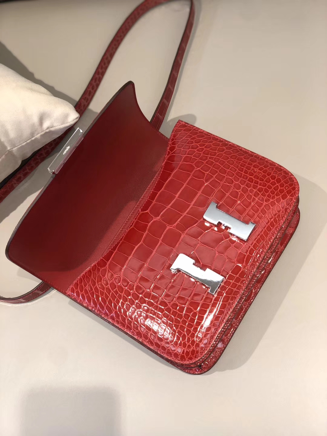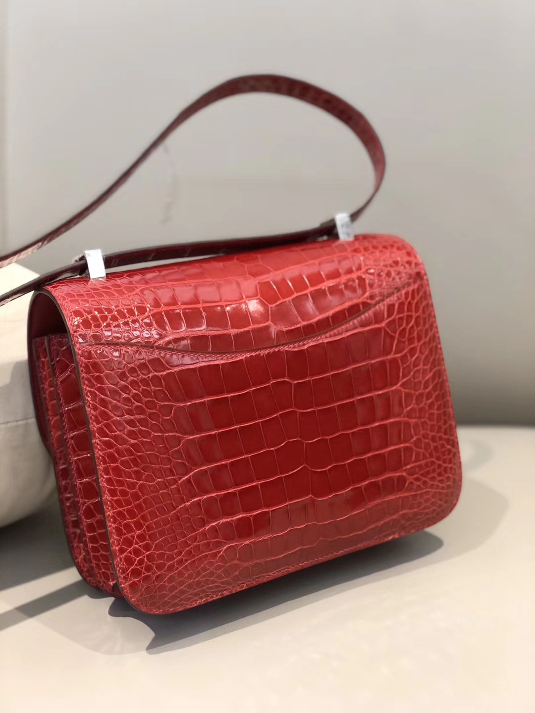 Hermès(爱马仕)Constance 24cm Alligator shiny 亮面鳄鱼 ck95 法拉利红 Braise 银扣 现货 2020年2月18日 0 【鳄鱼世家】www.Eyubao.com Constance 24 Constance 空姐包 品牌:Hermès(爱马仕);类别:Constance 空姐包;颜色:法拉利红;材质:亮面鳄鱼;等级:顶级;附件:全套包装礼盒;尺寸:24cm;功能:单肩背包