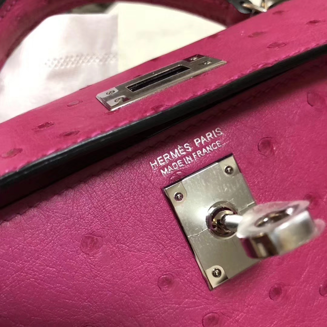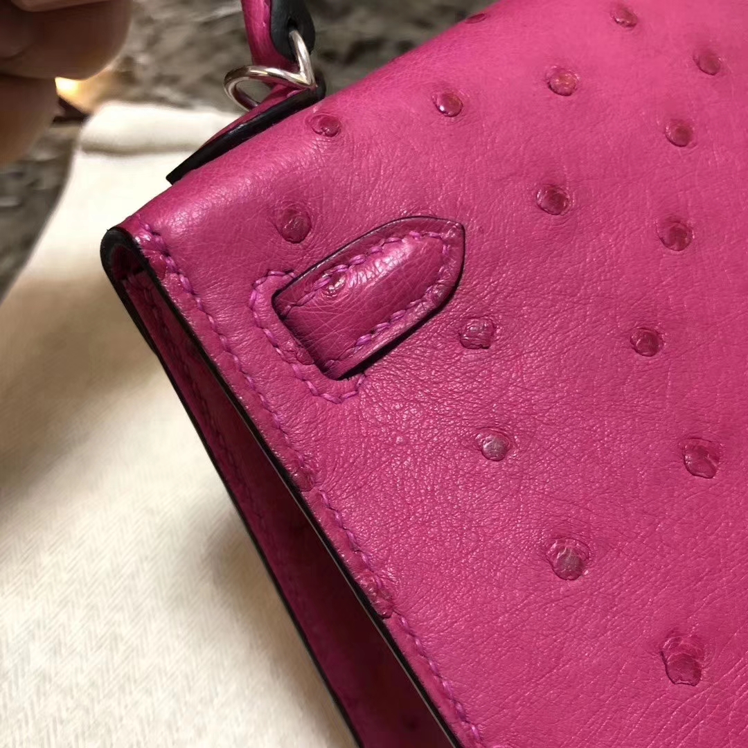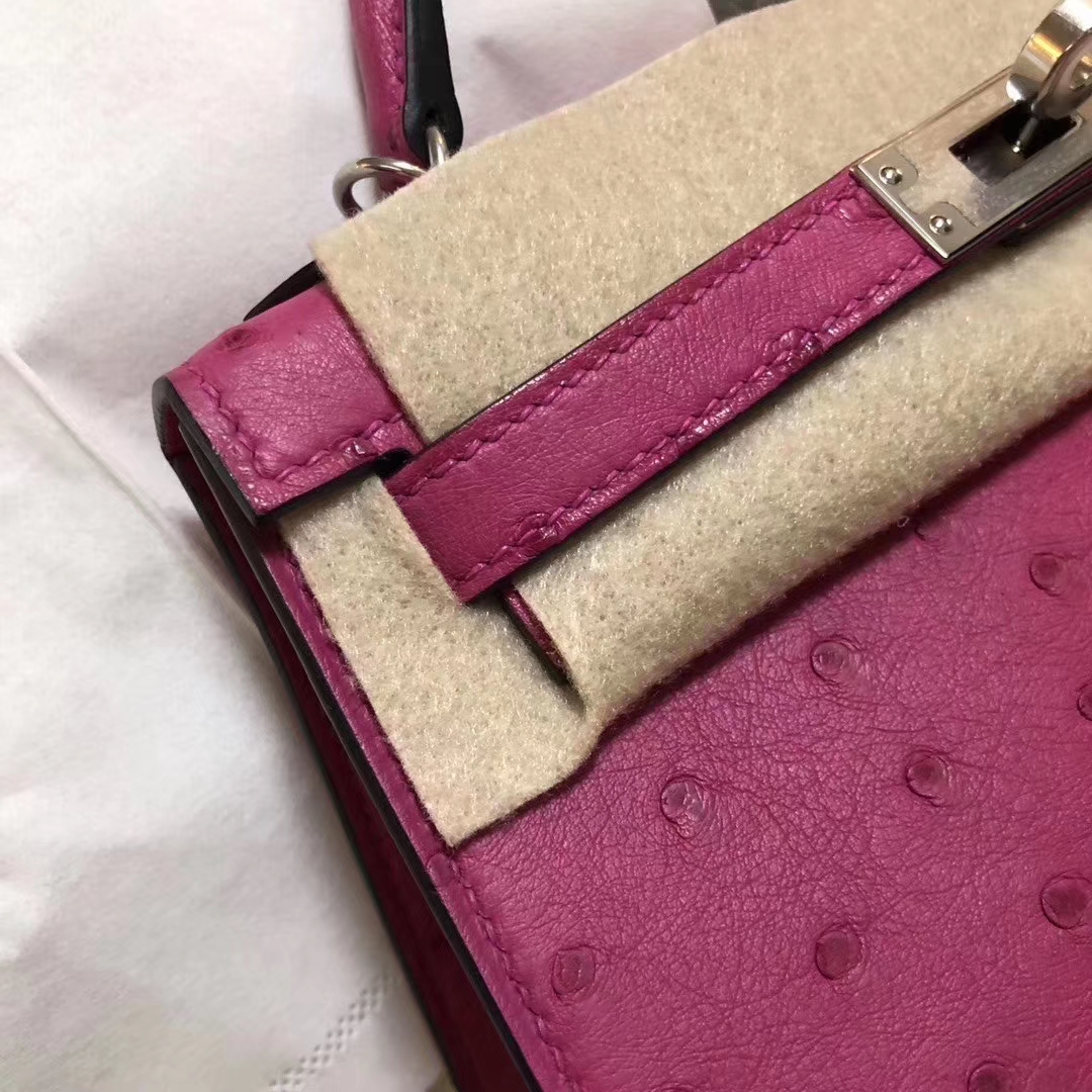 Hermès(爱马仕)Mini kelly ll Ostrich kk鸵鸟 L3 玫瑰紫 Rose purple 银扣 顶级手缝 现货 2020年2月19日 0 【鳄鱼世家】www.Eyubao.com Mini Kelly 2 Mini Kelly 迷你凯莉 品牌:Hermès(爱马仕);类别:Kelly 凯莉包;颜色:玫瑰紫;材质:原厂顶级鸵鸟皮;等级:顶级;附件:全套包装礼盒;尺寸: 19cm;功能:手拿包、晚宴包