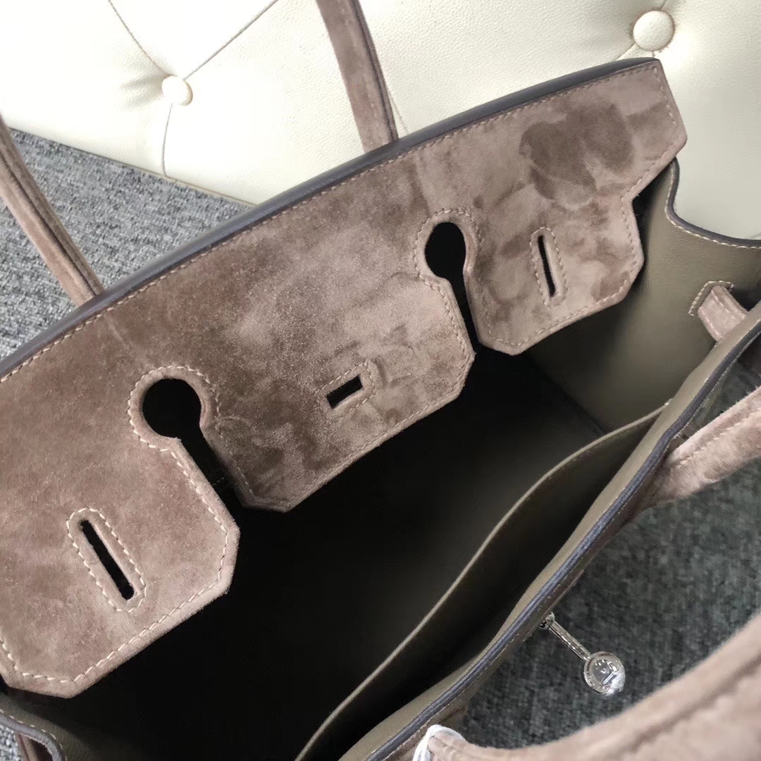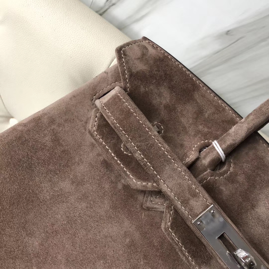 Hermès(爱马仕)Birkin 铂金包 麂皮 灰色 银扣 30cm 2020年2月19日 0 【鳄鱼世家】www.Eyubao.com Birkin 30 Birkin 铂金包 品牌:Hermès(爱马仕);类别:Birkin 铂金包;颜色:陶瓷粉;材质:麂皮;等级:顶级;附件:全套包装礼盒;尺寸:30cm;功能:手提单肩包