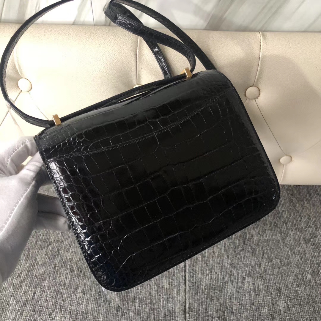 Hermès(爱马仕)Constance 18cm Alligator shiny 亮面鳄鱼 ck89 黑色 Noir 金扣 2020年2月19日 0 【鳄鱼世家】www.Eyubao.com Constance 18 Constance 空姐包 品牌:Hermès(爱马仕);类别:Constance 空姐包;颜色:黑色;材质:亮面鳄鱼;等级:顶级;附件:全套包装礼盒;尺寸:18cm;功能:单肩背包