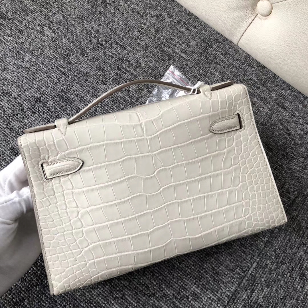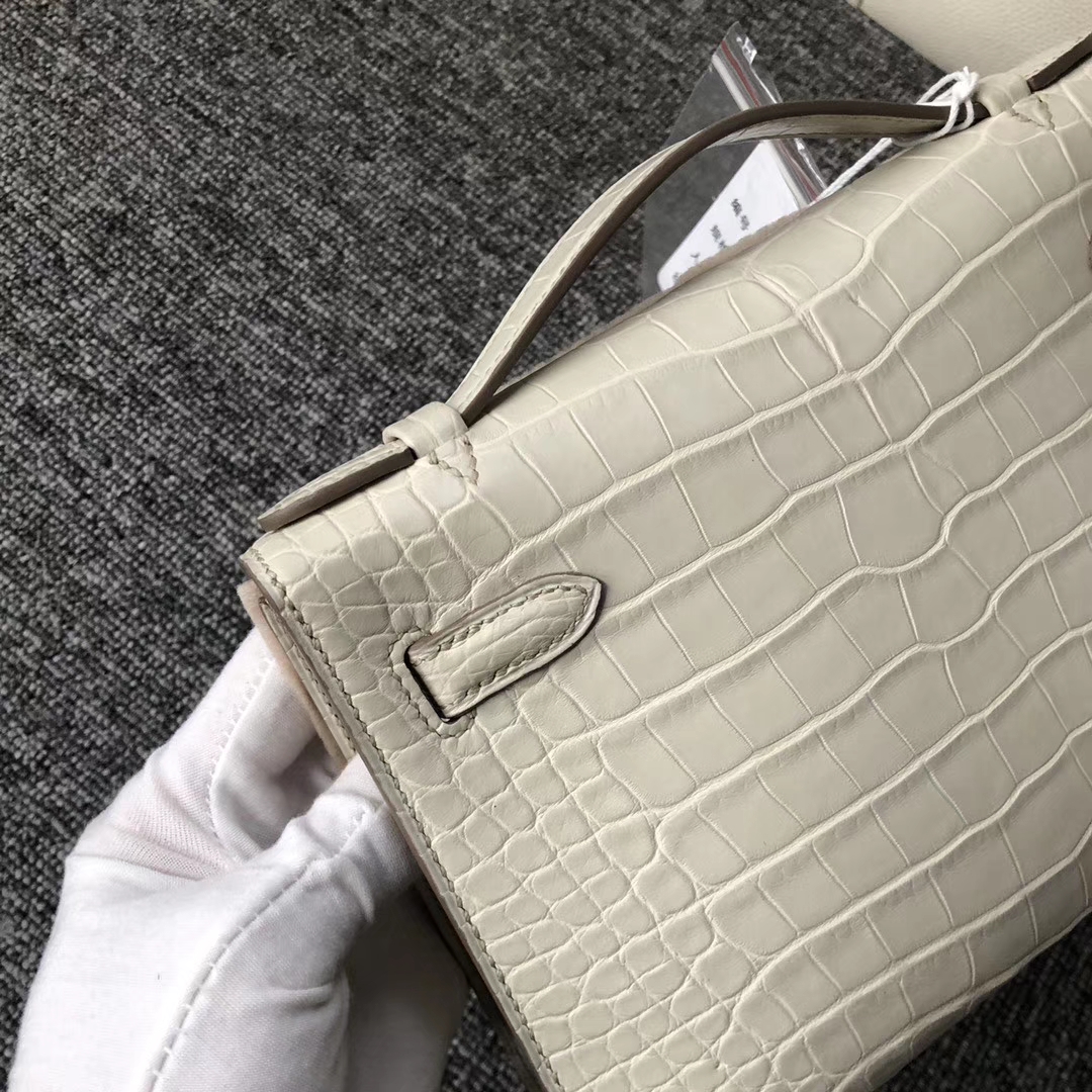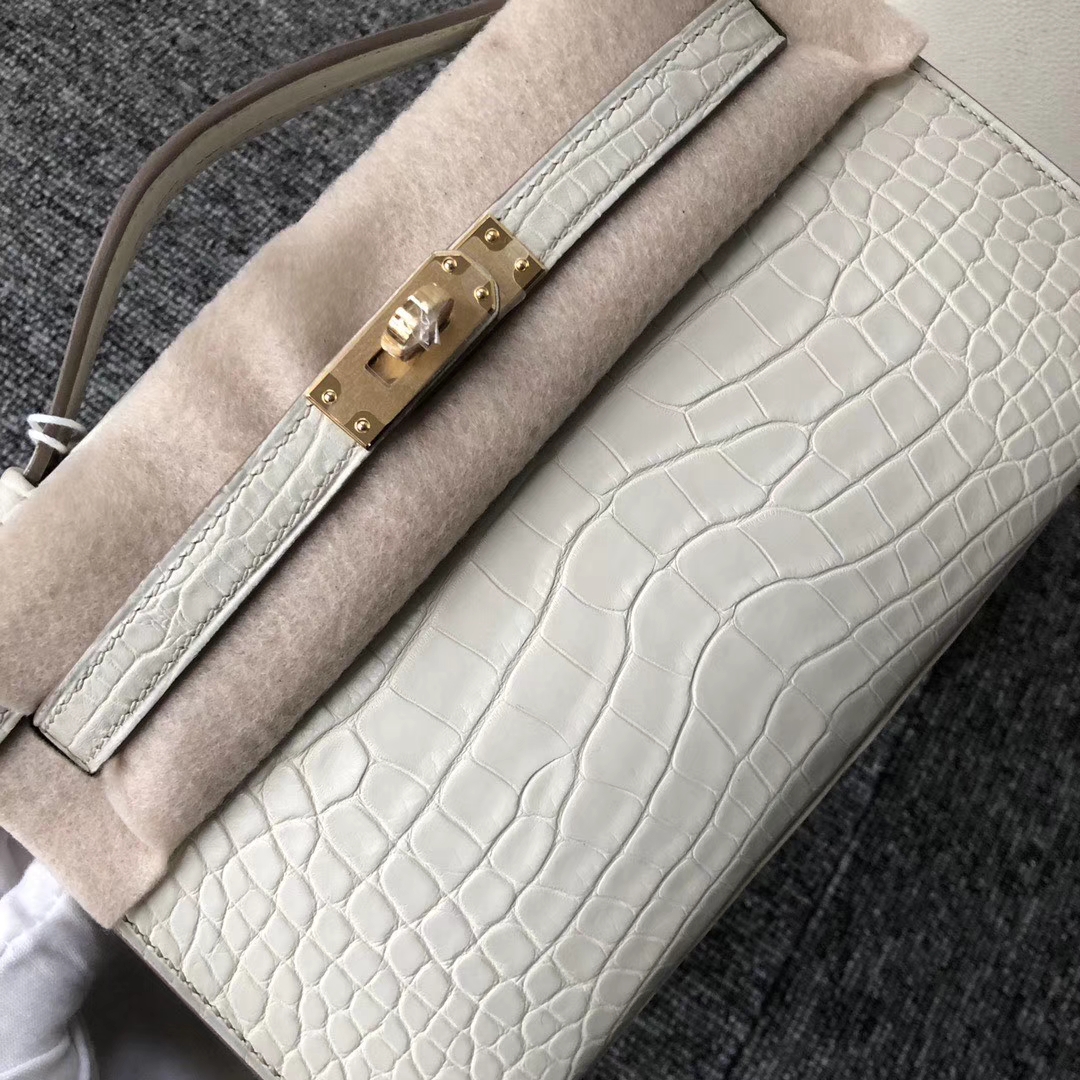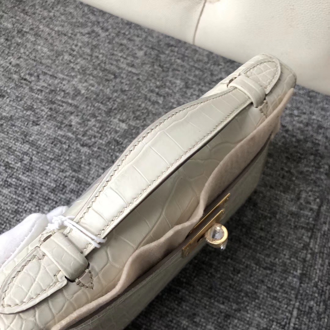 Hermès(爱马仕)Mini Kelly pochette 22cm Alligator matt 雾面鳄鱼 8L 奶油白 Beton 金扣 手拿包 晚宴包 2020年2月19日 0 【鳄鱼世家】www.Eyubao.com Mini Kelly 1 Mini Kelly 迷你凯莉 品牌:Hermès(爱马仕);类别:Mini Kelly迷你凯莉包;颜色:奶油白;材质:原厂精选鳄鱼皮;等级:顶级;附件:全套包装礼盒;尺寸:22cm;功能:手提单肩包