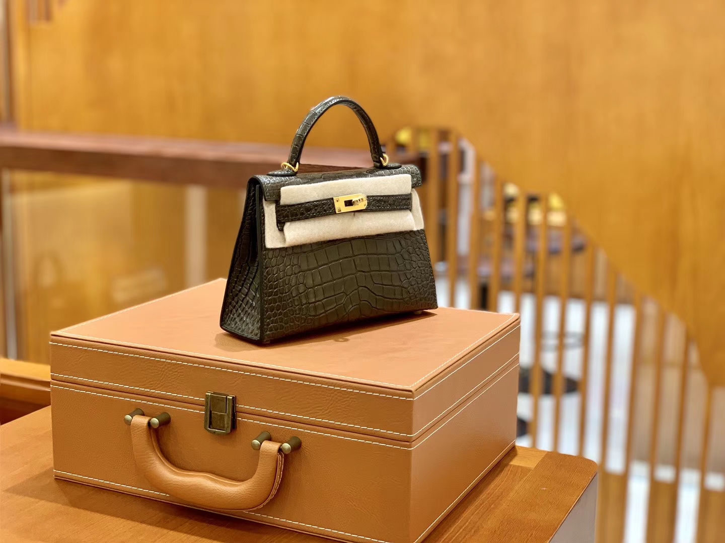 Hermès(爱马仕)Mini Kelly 迷你凯莉 经典黑 雾面鳄鱼 臻品级别 金扣 19cm 2020年2月26日 0 【鳄鱼世家】www.Eyubao.com Mini Kelly 2 Mini Kelly 迷你凯莉 品牌:Hermès(爱马仕);类别:Mini Kelly迷你凯莉包;颜色:经典黑;材质:一级美洲雾面鳄鱼;等级:顶级;附件:全套包装礼盒;尺寸:19cm;功能:手提单肩包