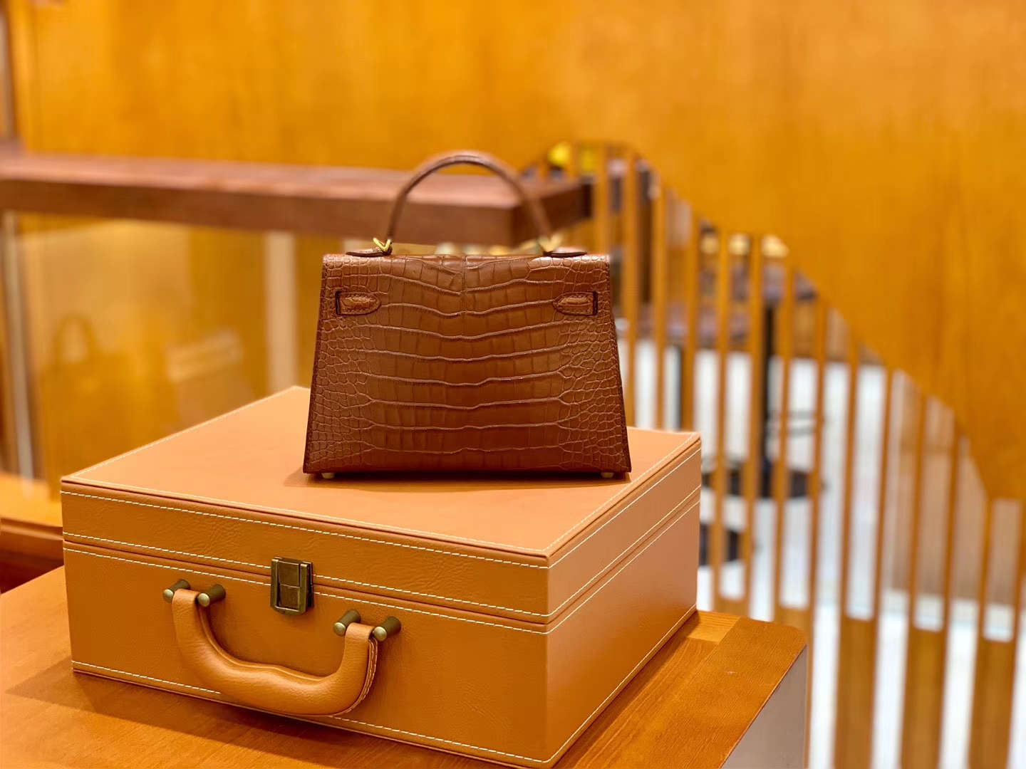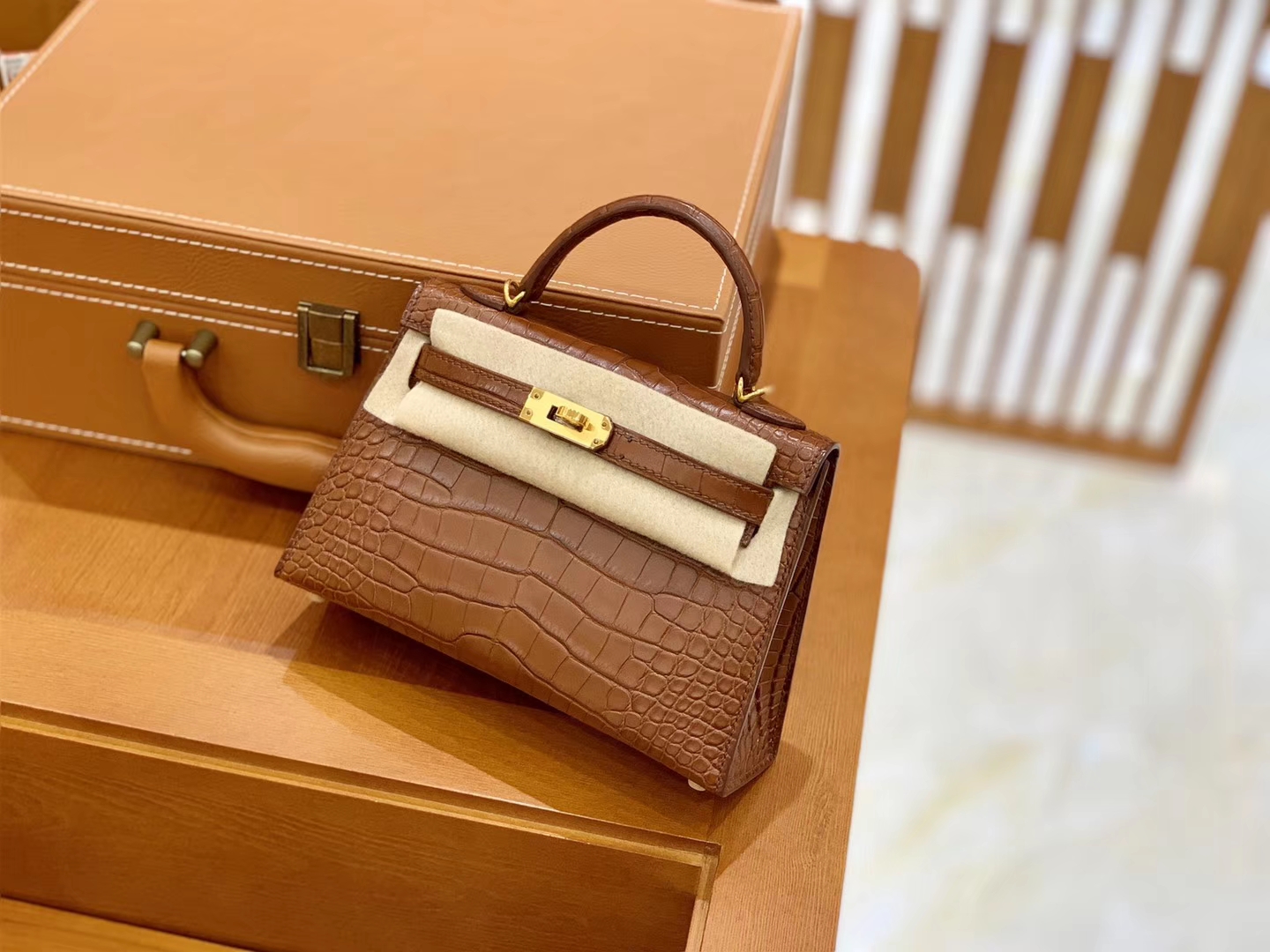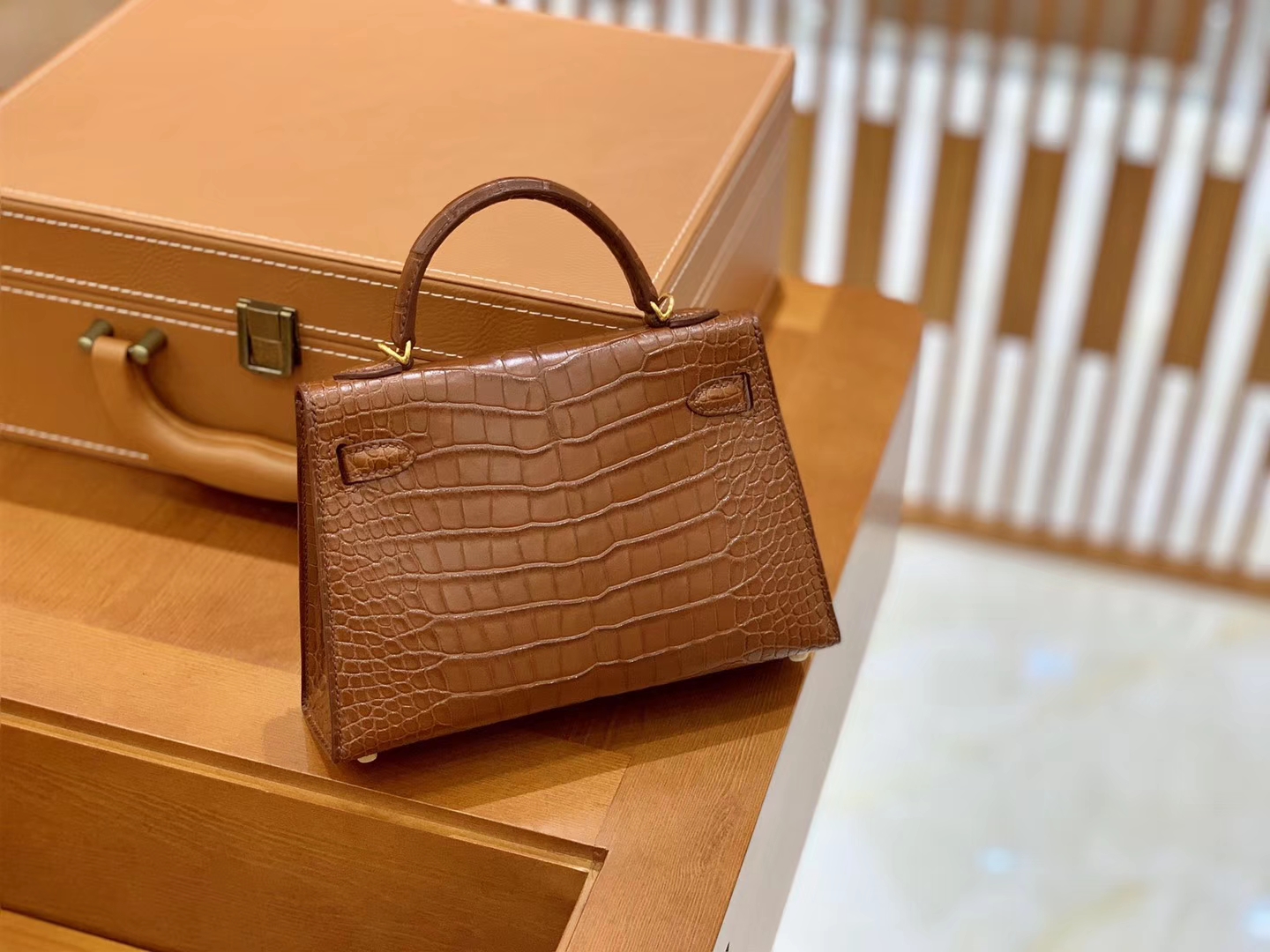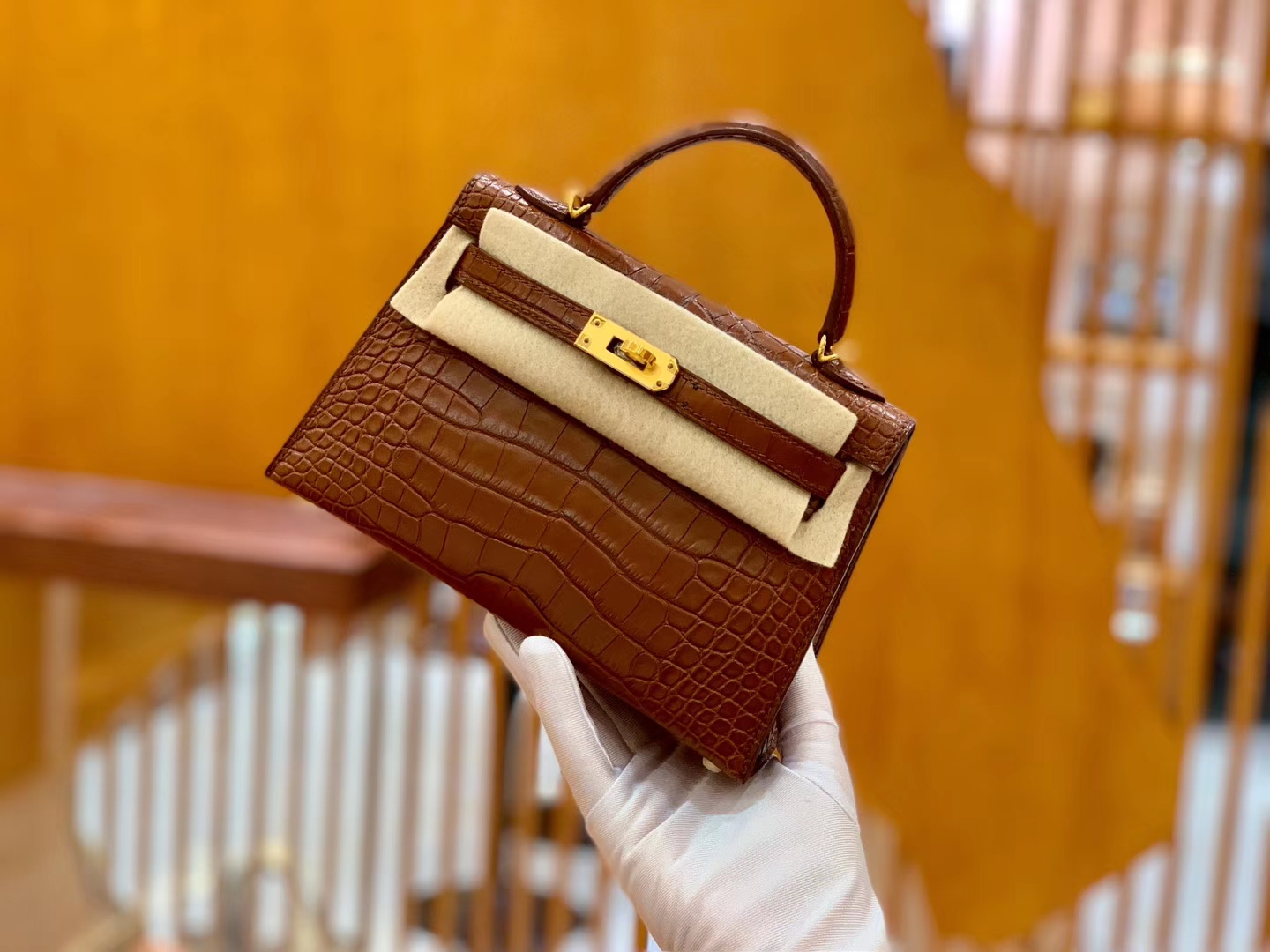 Hermès(爱马仕)Mini Kelly 迷你凯莉 深焦糖棕色 雾面鳄鱼 美洲 臻品级别 金扣 19cm 2020年2月26日 0 【鳄鱼世家】www.Eyubao.com Mini Kelly 2 Mini Kelly 迷你凯莉 品牌:Hermès(爱马仕);类别:Mini Kelly迷你凯莉包;颜色:焦糖棕色;材质:一级美洲雾面鳄鱼;等级:顶级;附件:全套包装礼盒;尺寸:19cm;功能:手提单肩包
