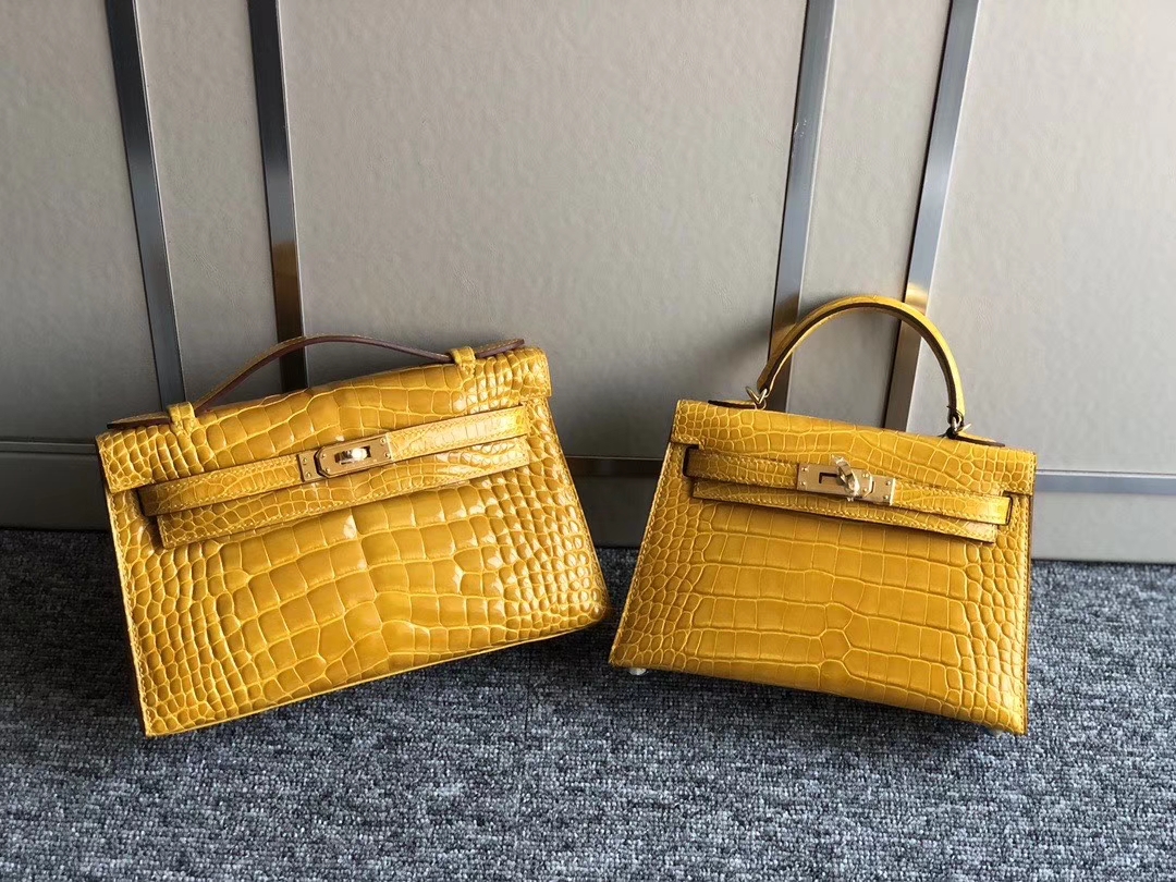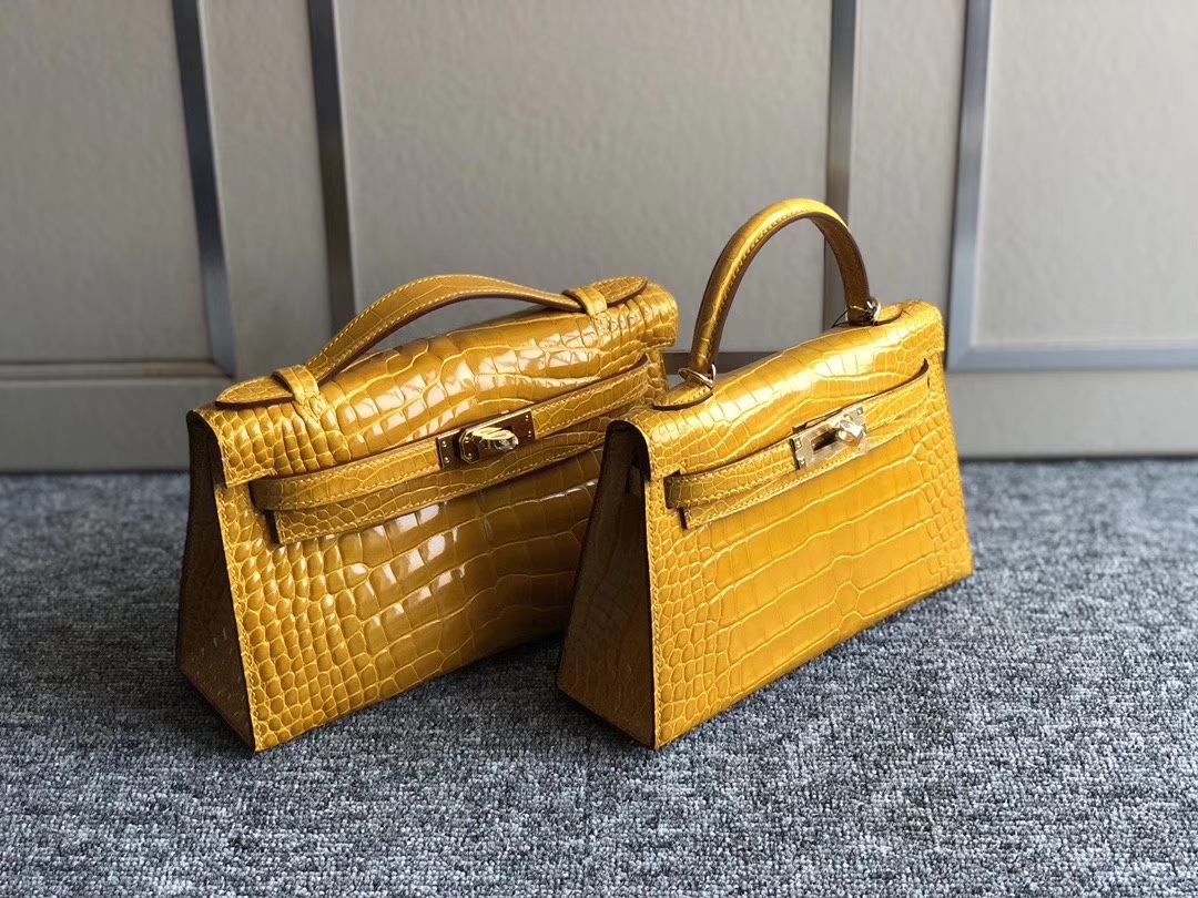 Hermès(爱马仕)Mini kelly pochette 22cm Alligator shiny 亮面鳄鱼 9D 琥珀黄 Ambre 金扣 2020年2月28日 0 【鳄鱼世家】www.Eyubao.com Mini Kelly 1 Mini Kelly 2 Mini Kelly 迷你凯莉 品牌:Hermès(爱马仕);类别:Mini Kelly迷你凯莉包;颜色:琥珀黄;材质:雾面鳄鱼;等级:顶级;附件:全套包装礼盒;尺寸:19cm/22cm;功能:手提单肩包