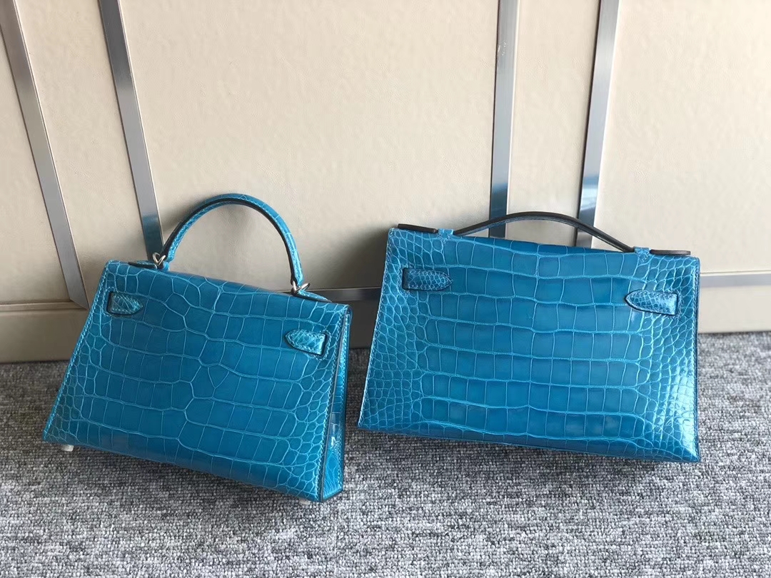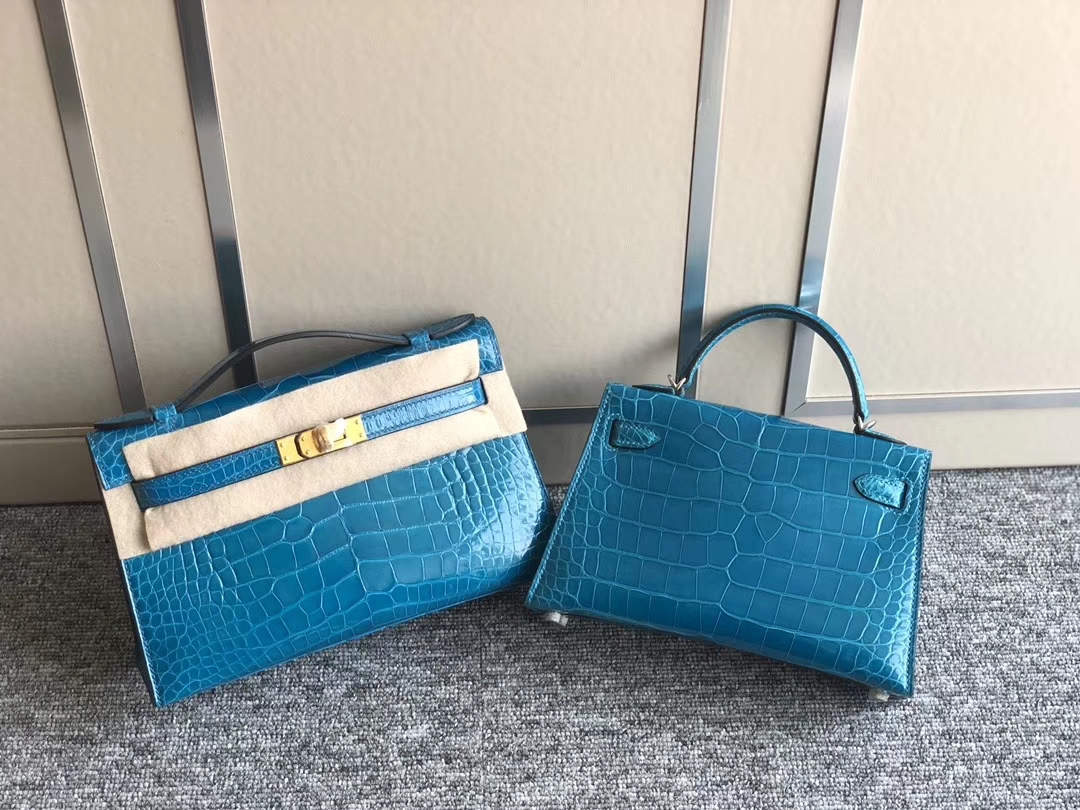 Hermès(爱马仕)Mini kelly pochette 22cm Alligator shiny 亮面鳄鱼 7w 伊兹密尔蓝 金扣 银扣 2020年2月28日 0 【鳄鱼世家】www.Eyubao.com Mini Kelly 1 Mini Kelly 2 Mini Kelly 迷你凯莉 品牌:Hermès(爱马仕);类别:Mini Kelly迷你凯莉包;颜色:伊兹密尔蓝;材质:雾面鳄鱼;等级:顶级;附件:全套包装礼盒;尺寸:19cm/22cm;功能:手提单肩包