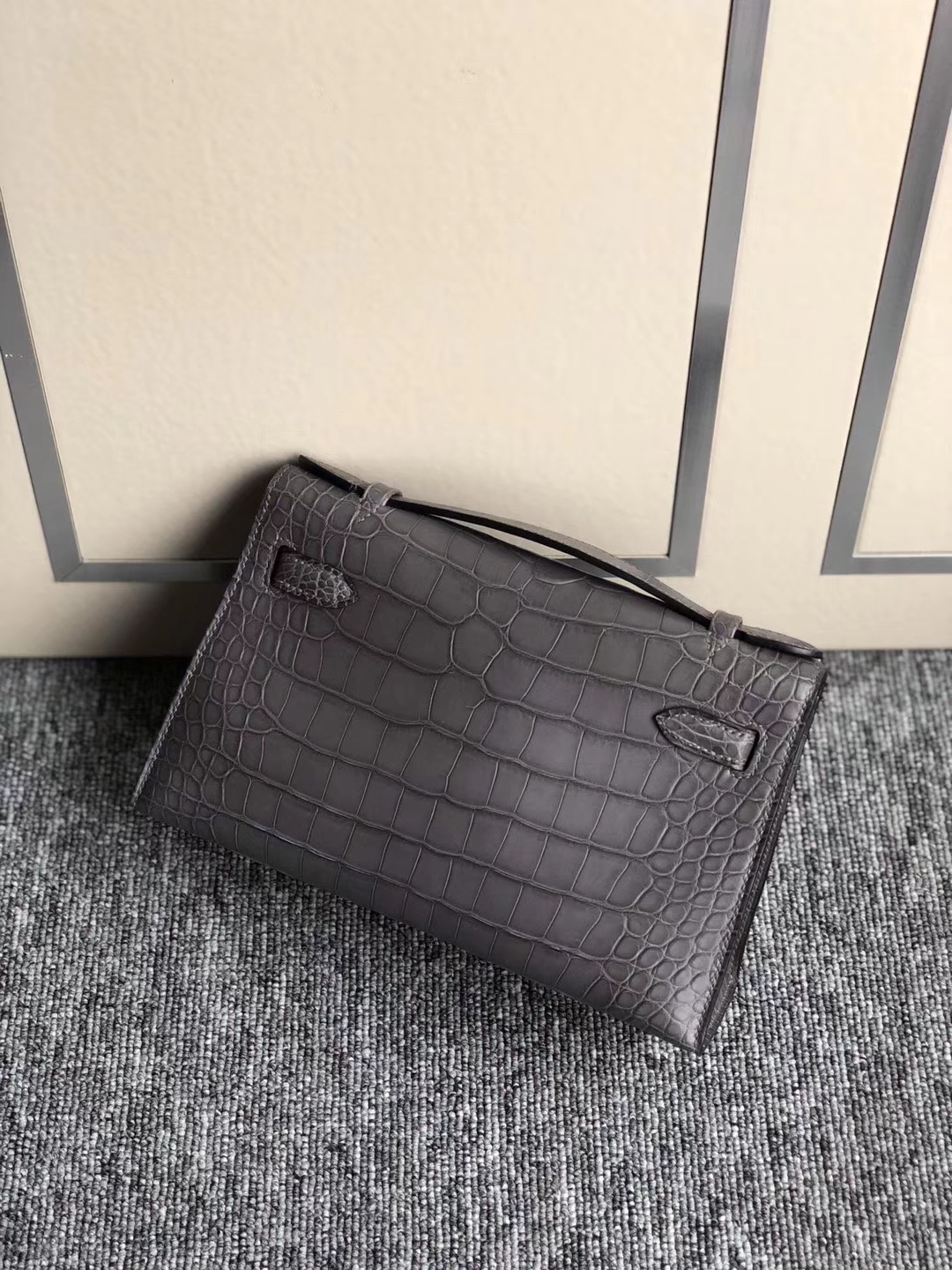 Hermès(爱马仕)Mini kelly pochette 22cm 雾面鳄鱼 巴黎灰 金扣 手拿包 晚宴包 现货 2020年3月3日 0 【鳄鱼世家】www.Eyubao.com Mini Kelly 1 Mini Kelly 迷你凯莉 品牌:Hermès(爱马仕);类别:Mini Kelly迷你凯莉包;颜色:巴黎灰;材质:雾面鳄鱼;等级:顶级;附件:全套包装礼盒;尺寸:22cm;功能:手提单肩包