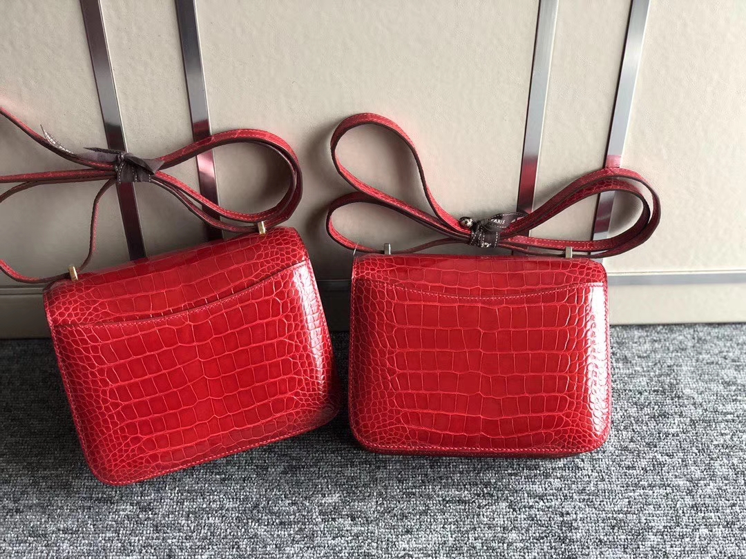 Hermès(爱马仕)Constance18cm Alliagtor shiny 亮面鳄鱼 ck95 法拉利红 Braise 金扣 银扣 2020年3月6日 0 【鳄鱼世家】www.Eyubao.com Constance 18 Constance 空姐包 品牌:Hermès(爱马仕);类别:Constance 空姐包;颜色:法拉利红;材质:亮面鳄鱼;等级:顶级;附件:全套包装礼盒;尺寸:18cm;功能:单肩背包