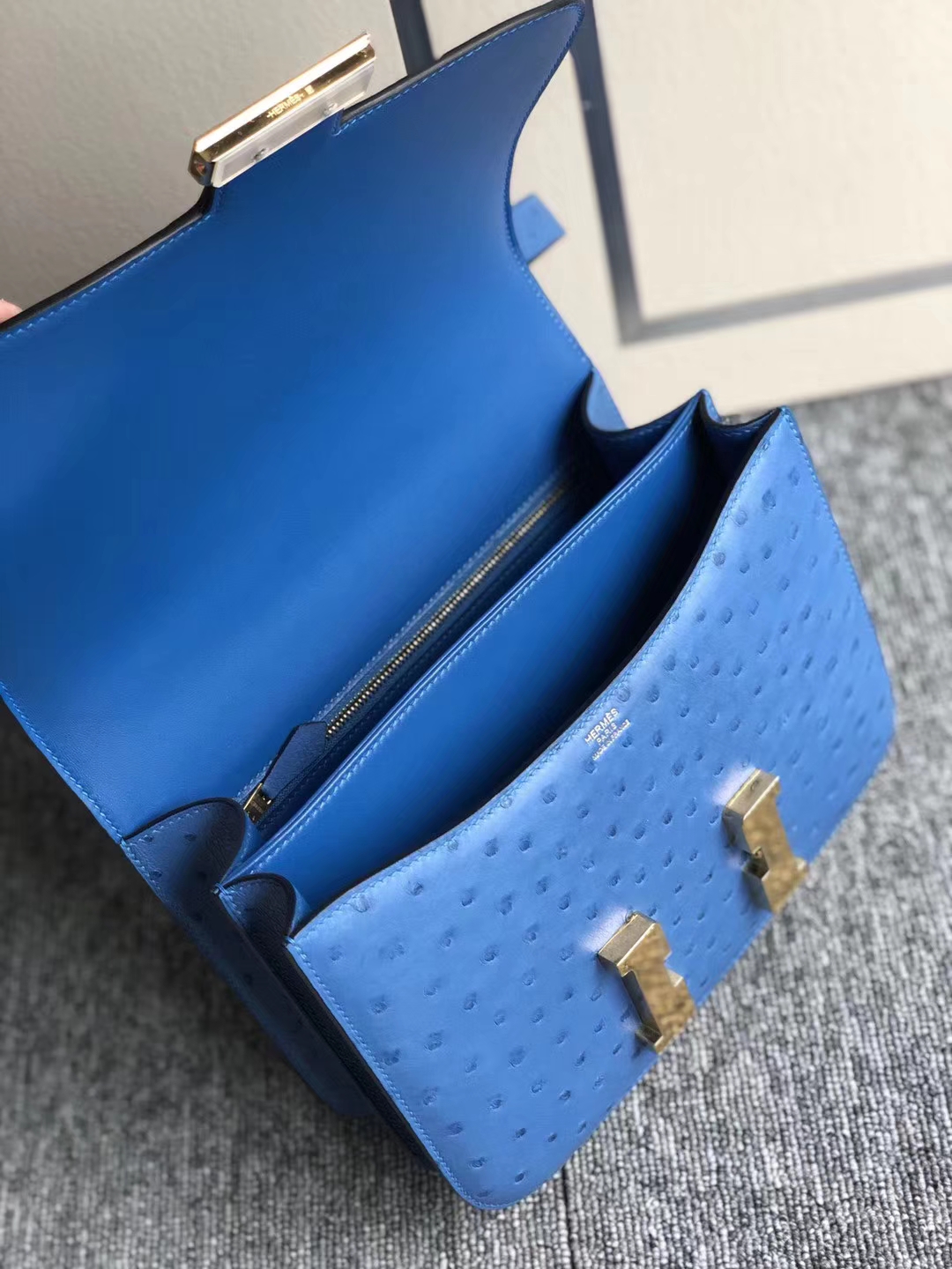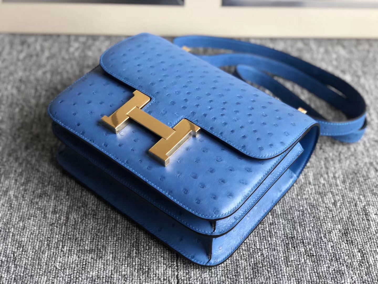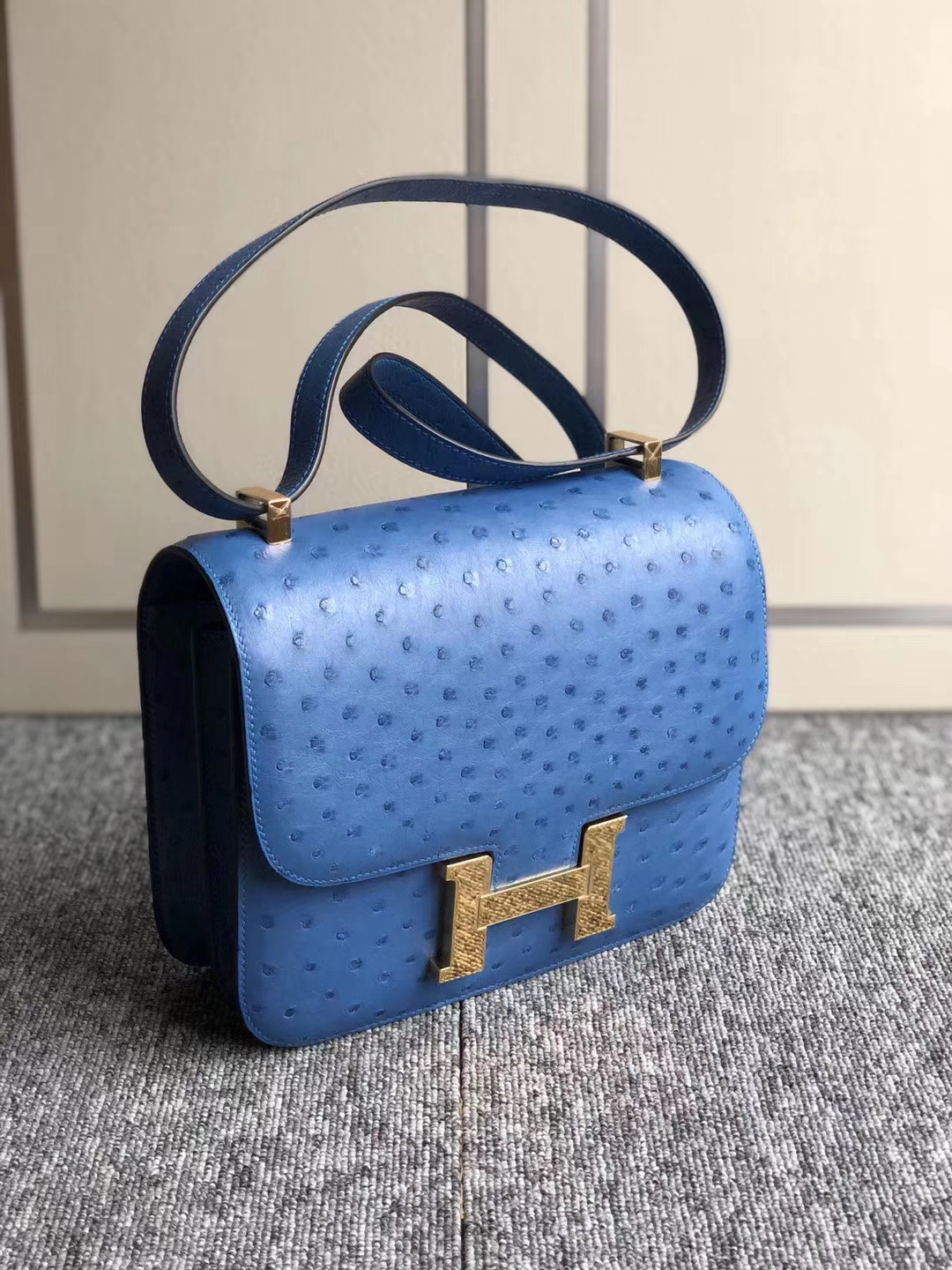 Hermès(爱马仕)Constance 23cm kk ostrich 顶级鸵鸟皮 7Q希腊蓝 蜡线全手工 金扣 2020年3月7日 0 【鳄鱼世家】www.Eyubao.com Constance 24 Constance 空姐包 品牌:Hermès(爱马仕);类别:Constance 空姐包;颜色:希腊蓝;材质:顶级鸵鸟皮;等级:顶级;附件:全套包装礼盒;尺寸:23cm;功能:单肩背包