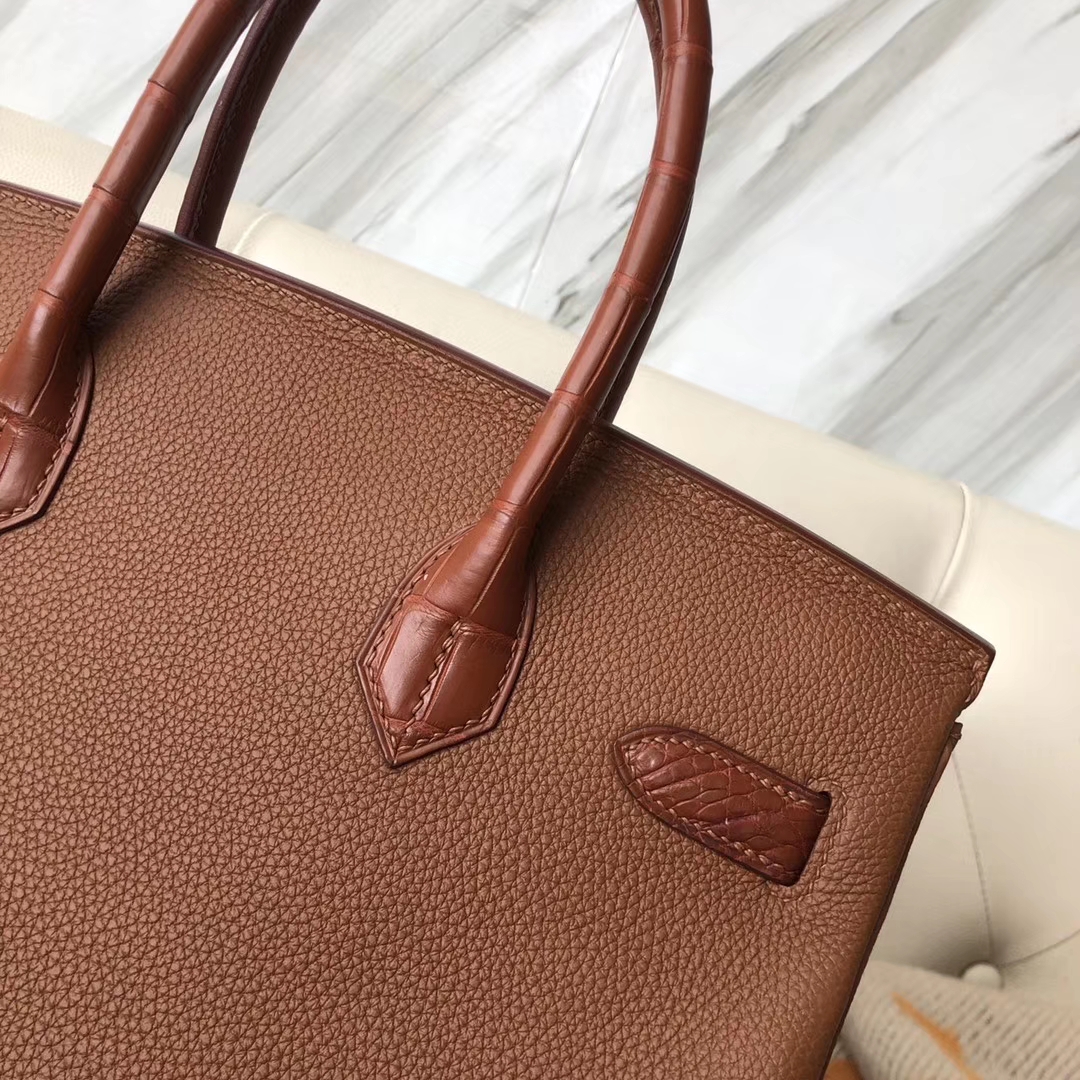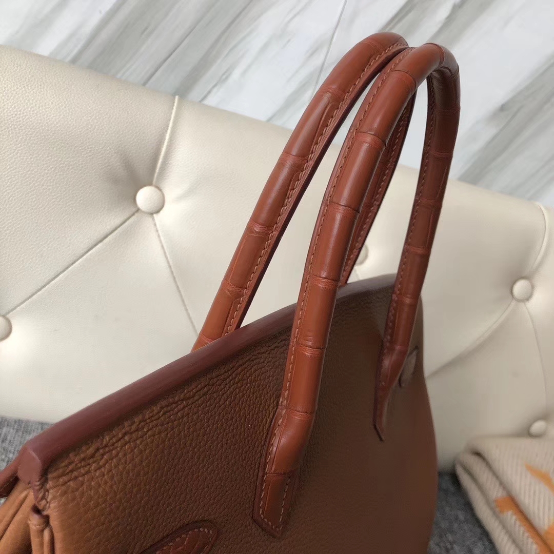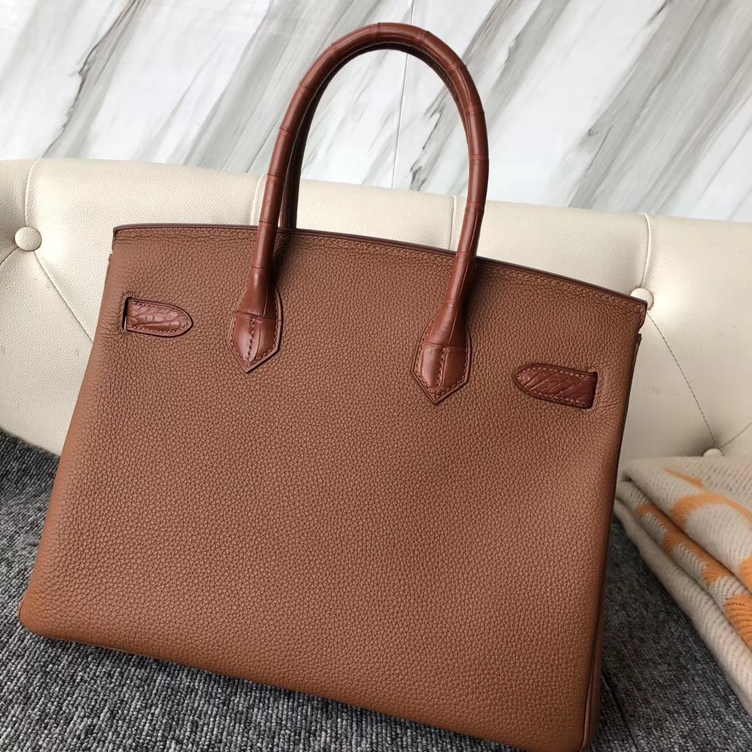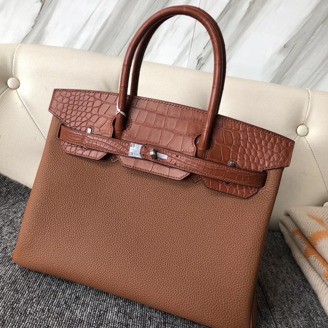 Hermès(爱马仕)touch 系列 Birkin 30cm togo鳄鱼 ck37 金棕色 gold 雾面棕色鳄鱼 银扣 现货 2020年3月17日 0 【鳄鱼世家】www.Eyubao.com Birkin 30 Birkin 铂金包 品牌:Hermès(爱马仕);类别:Birkin 铂金包;颜色:金棕色;材质:鳄鱼\雾面棕色鳄鱼;等级:顶级;附件:全套包装礼盒;尺寸:30cm;功能:手提单肩包