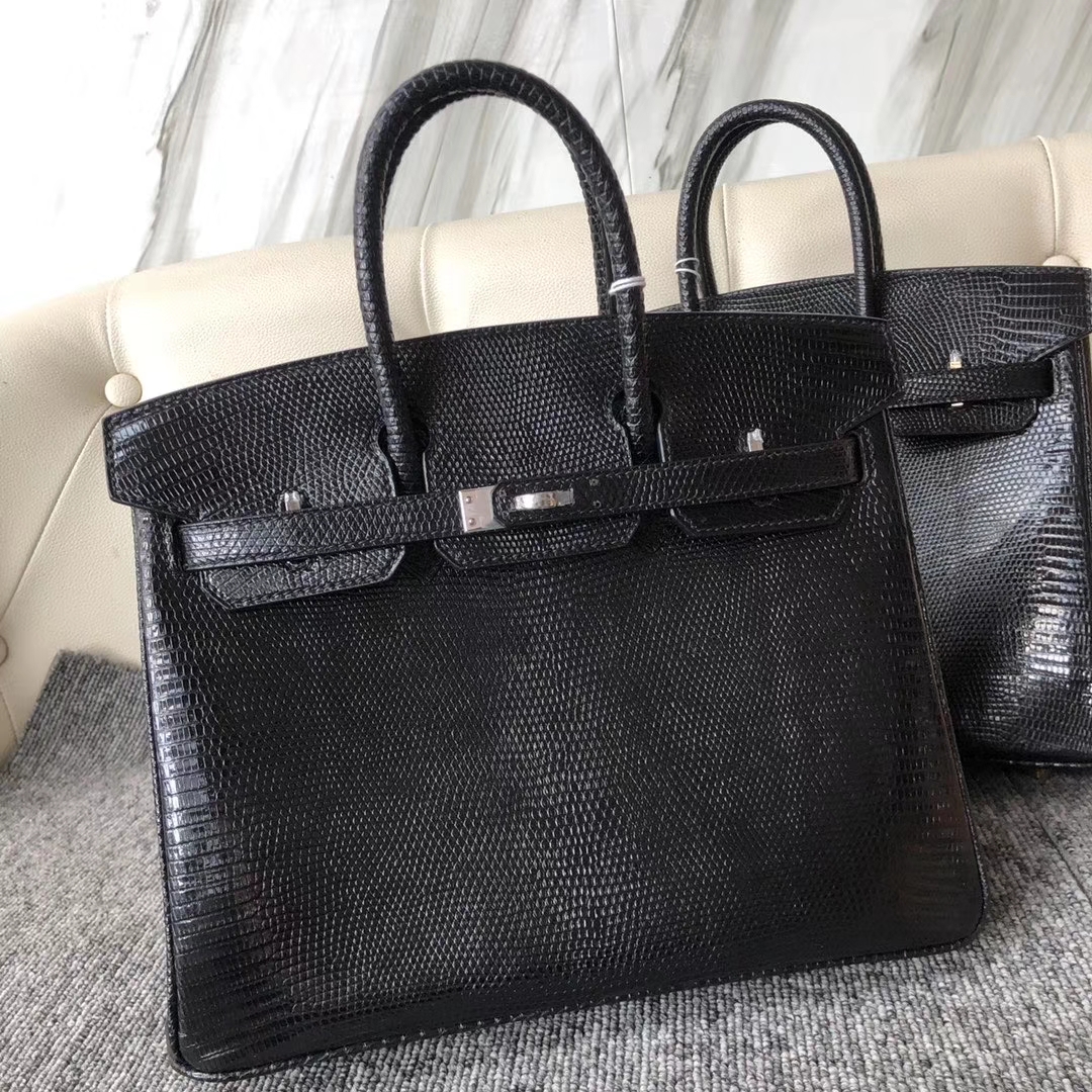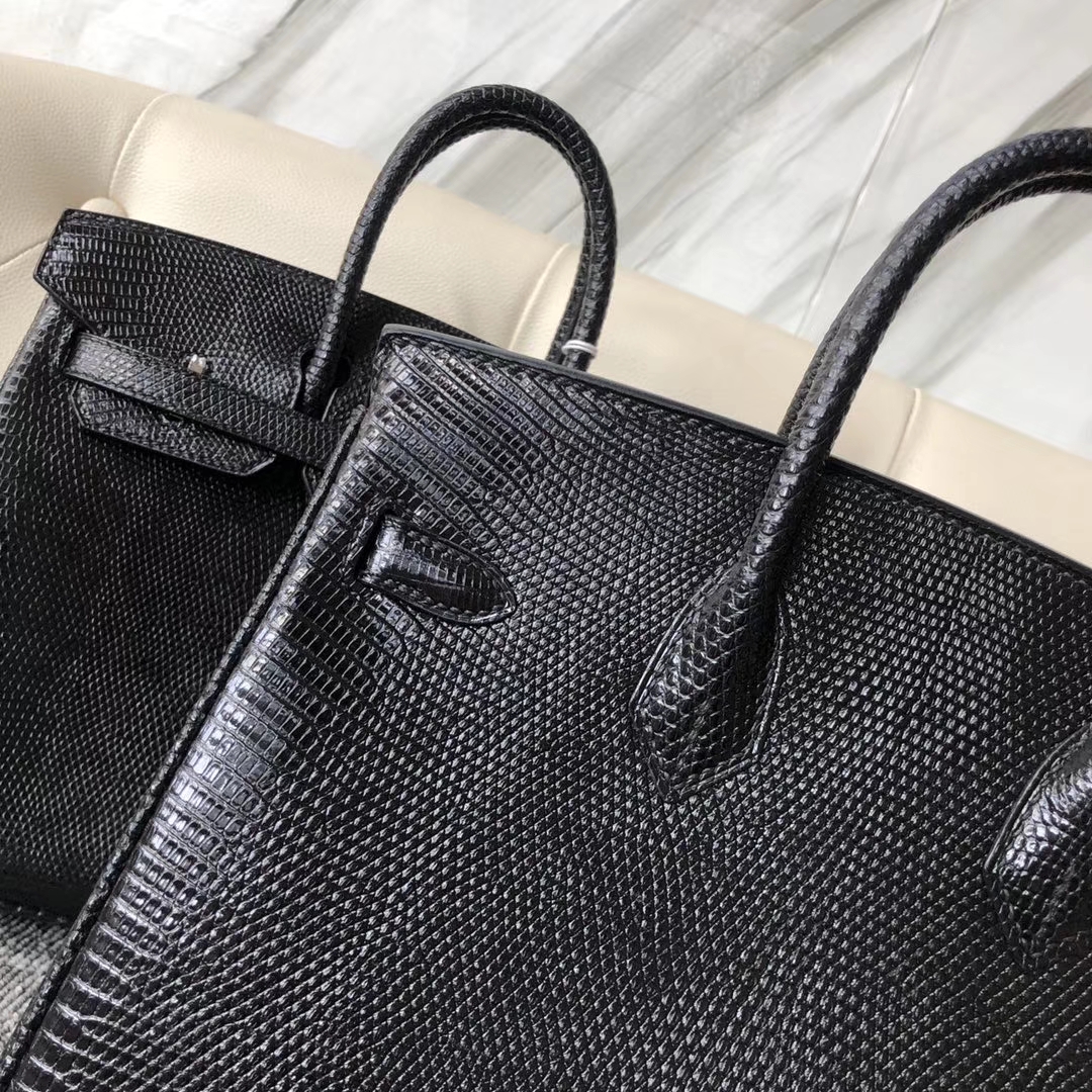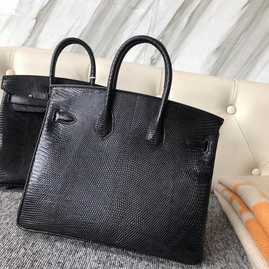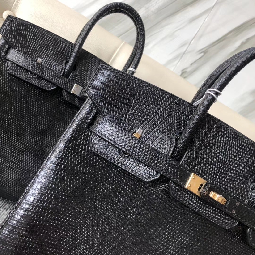 Hermès(爱马仕)Birkin 25cm Lizard 进口亮面蜥蜴 ck89 黑色 Noir 金扣 顶级手缝 现货 2020年3月17日 0 【鳄鱼世家】www.Eyubao.com Birkin 25 Birkin 铂金包 品牌:Hermès(爱马仕);类别:Birkin 铂金包;颜色:黑色;材质:进口亮面蜥蜴;等级:顶级;附件:全套包装礼盒;尺寸:25cm;功能:手提单肩包