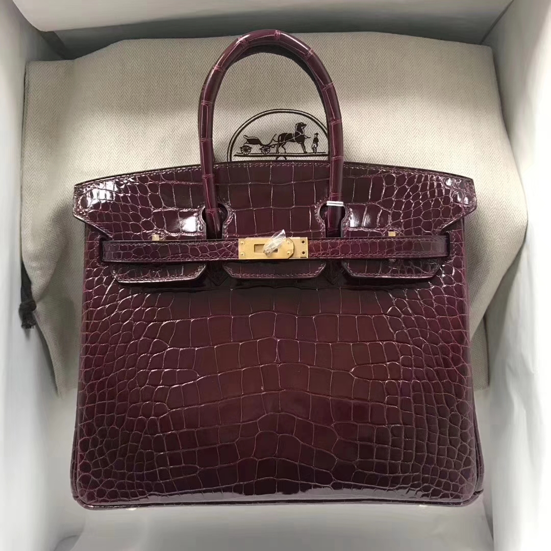 Birkin 25 Birkin 铂金包 Hermès(爱马仕)Birkin铂金包 Alligator shiny 亮面鳄鱼 ck57 波尔多酒红 金扣 顶级手缝 25cm 现货 2019年7月12日 0