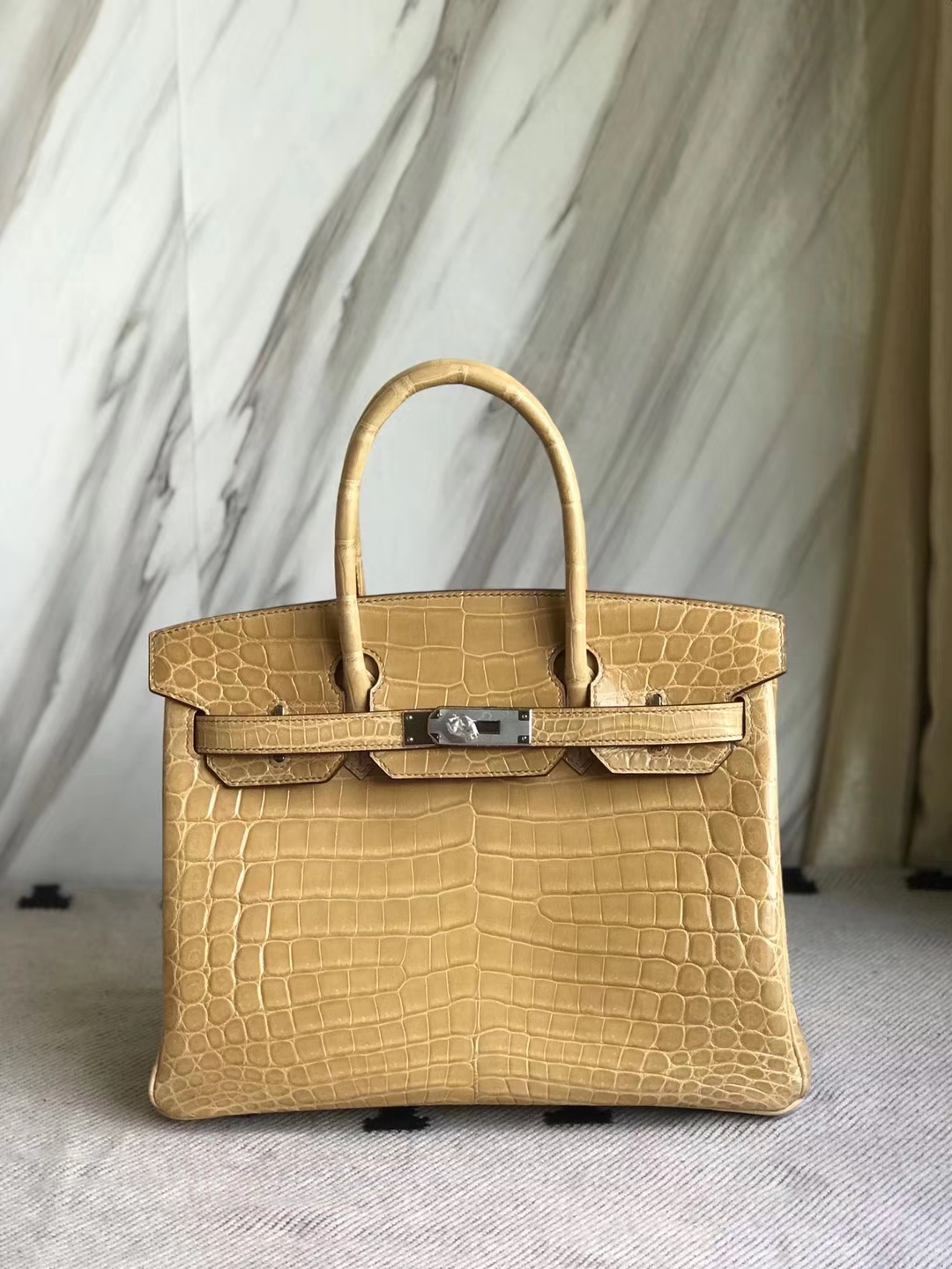 Hermès(爱马仕)Birkin30cm Crocodile shiny 亮面两点鳄鱼 杏色 奶茶色 银扣