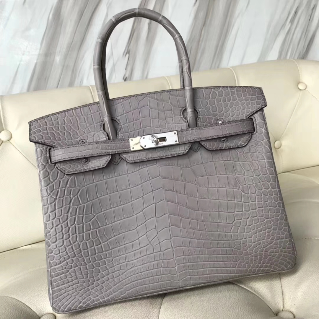 Hermès(爱马仕)Birkin30cm Crocodile matt 雾面鳄鱼 银河灰 银扣 现货