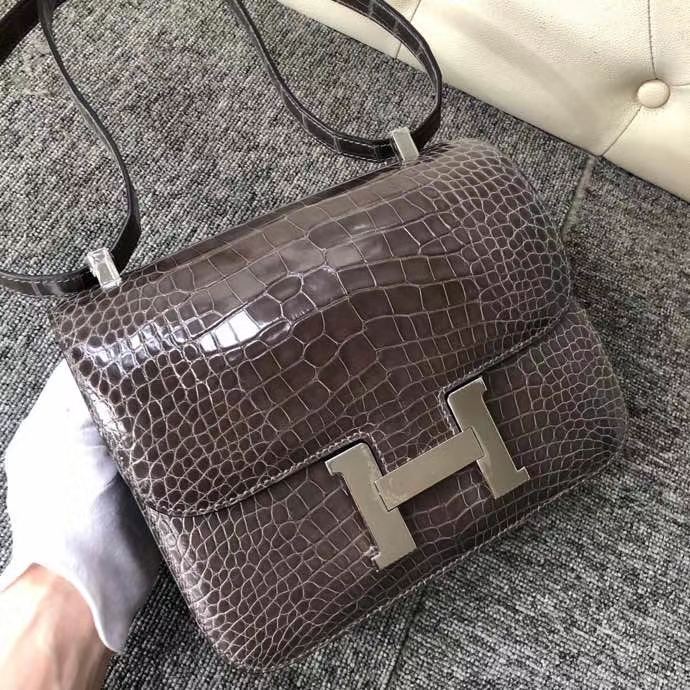 Constance 24 Constance 空姐包 Niloticus 尼罗鳄 Hermès(爱马仕)Constance 24cm Alligator shiny 亮面鳄鱼 ck81 斑鸠灰 Gris T 金扣 现货 2020年5月19日 0