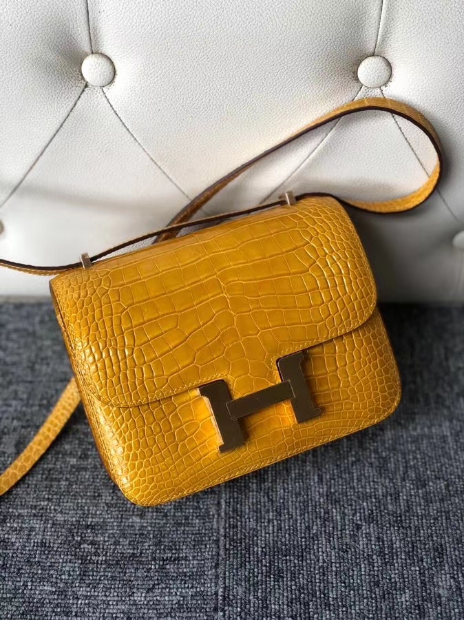 Alligator 美洲鳄 Constance 18 Constance 空姐包 Hermès(爱马仕)Constance 18cm Alligator shiny 亮面鳄鱼 9D 琥珀黄 Ambre 金扣 顶级手缝 现货 2020年6月11日 0