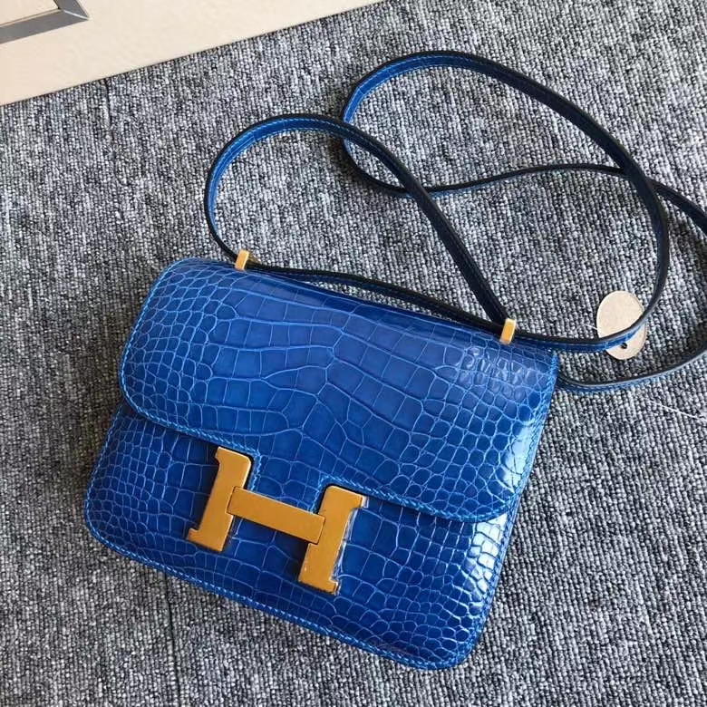 Constance 18 Constance 空姐包 Niloticus 尼罗鳄 Hermès(爱马仕)Constance 18cm Alligator shiny 亮面鳄鱼 希腊蓝 金扣 顶级手缝 现货 2020年6月11日 0