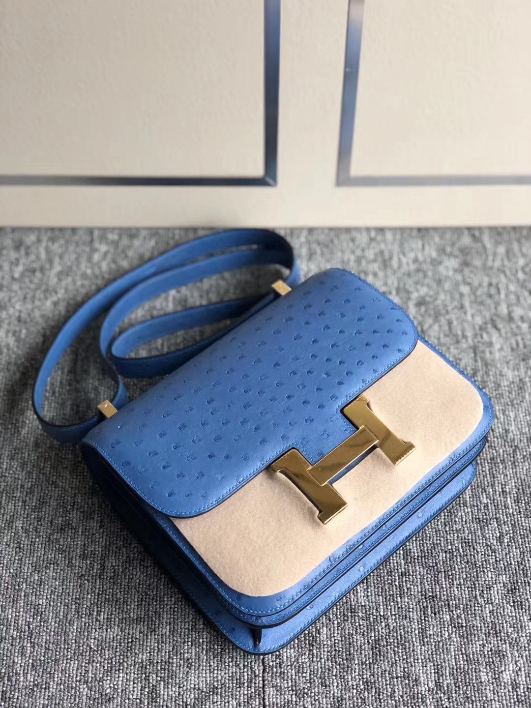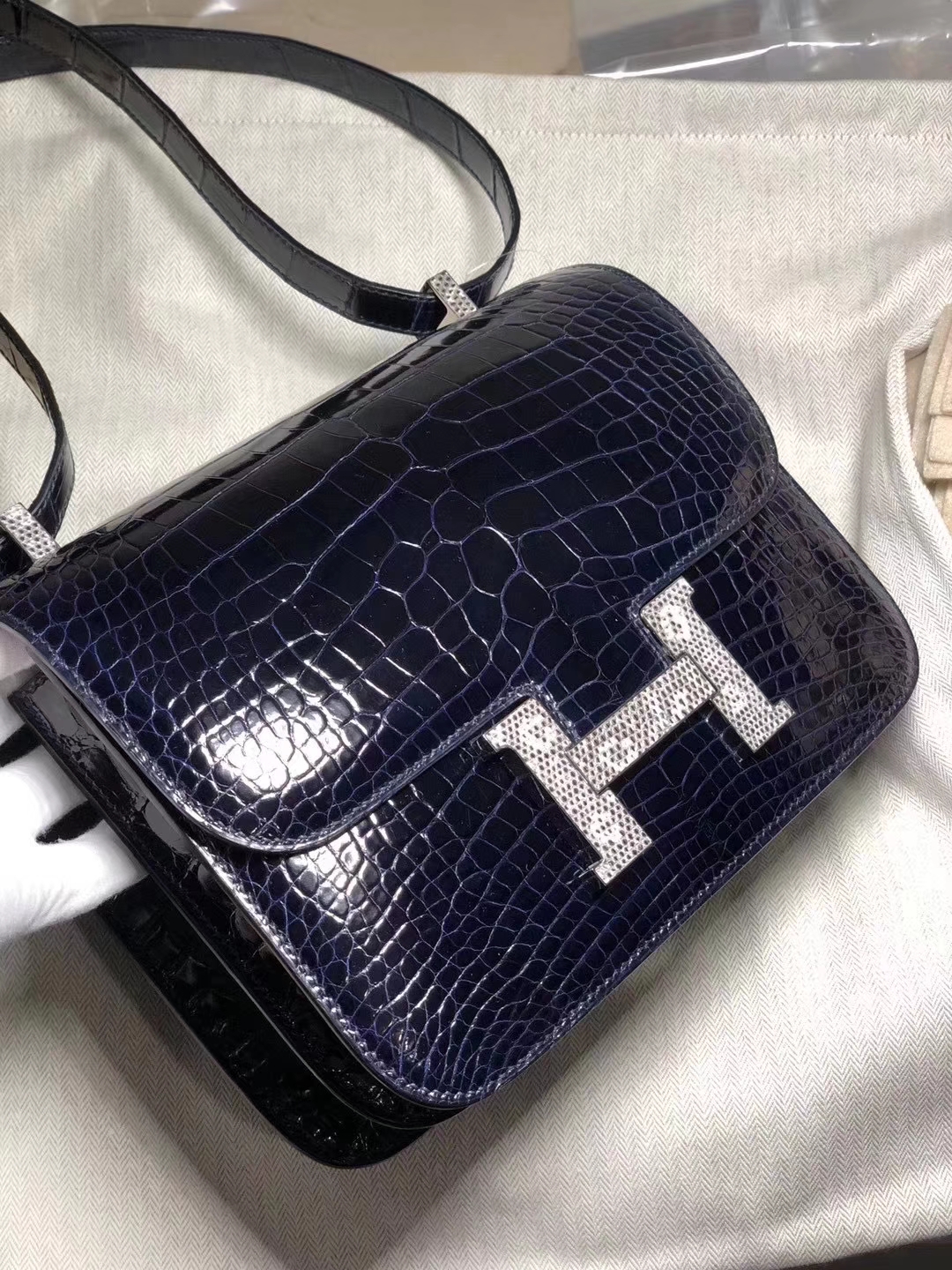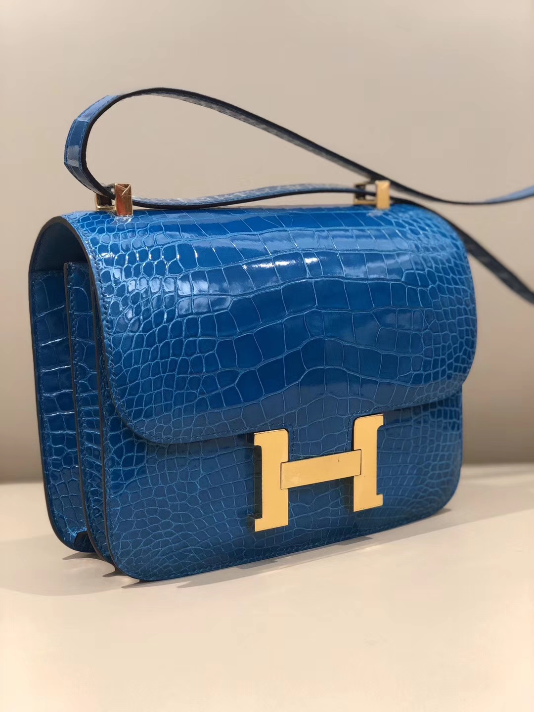 Constance 24 Constance 空姐包 Hermès(爱马仕)Constance 24cm Alligator shiny 亮面鳄鱼7w 伊兹密尔蓝 Blue izmir 金扣 现货 2020年2月18日 0
