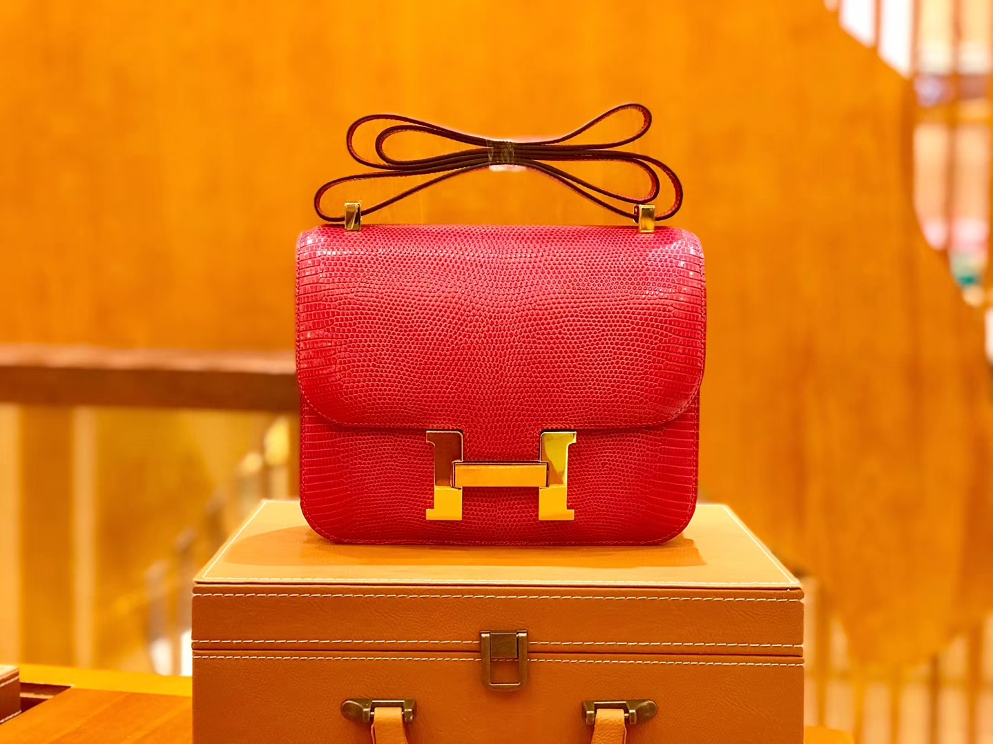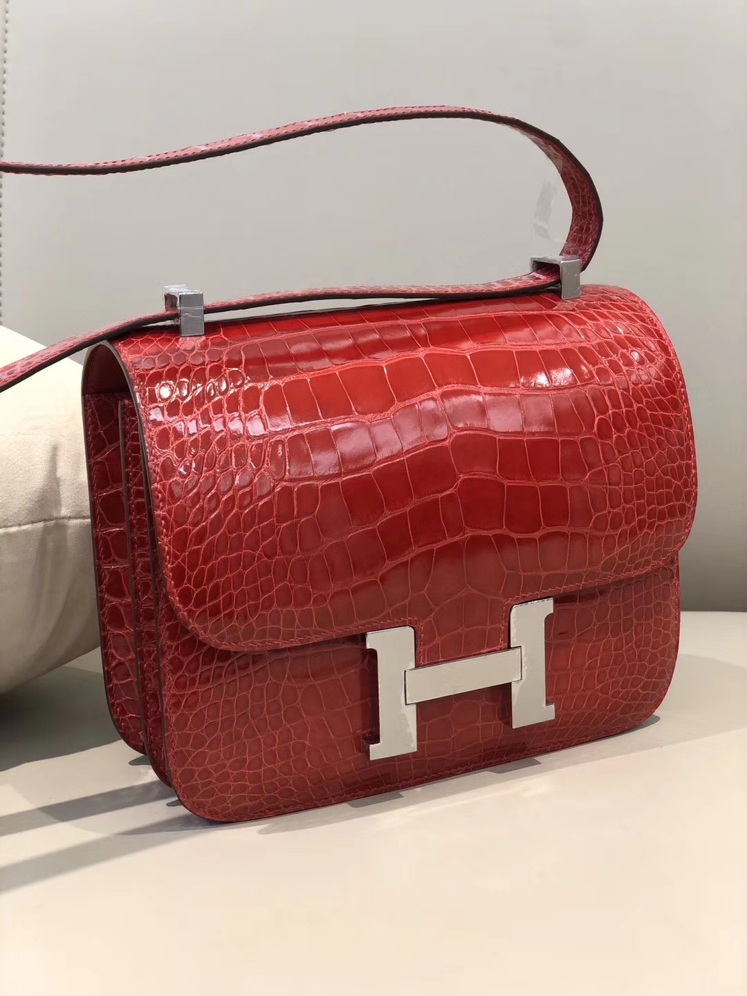 Constance 24 Constance 空姐包 Hermès(爱马仕)Constance 24cm Alligator shiny 亮面鳄鱼 ck95 法拉利红 Braise 银扣 现货 2020年2月18日 0