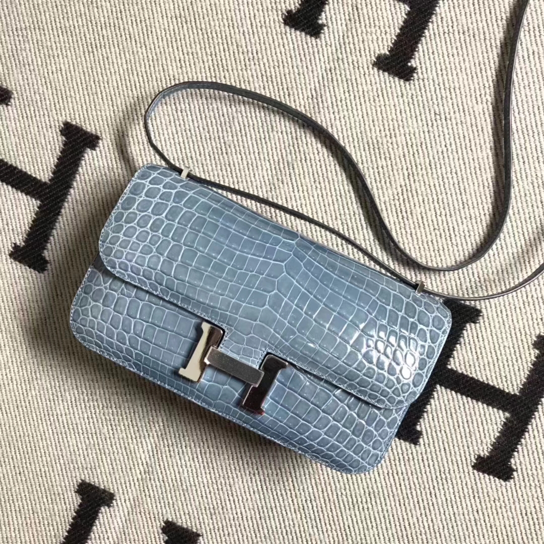 Hermès(爱马仕)Constance 空姐包 极品亮面鳄鱼 小康elan 牛仔蓝 26cm