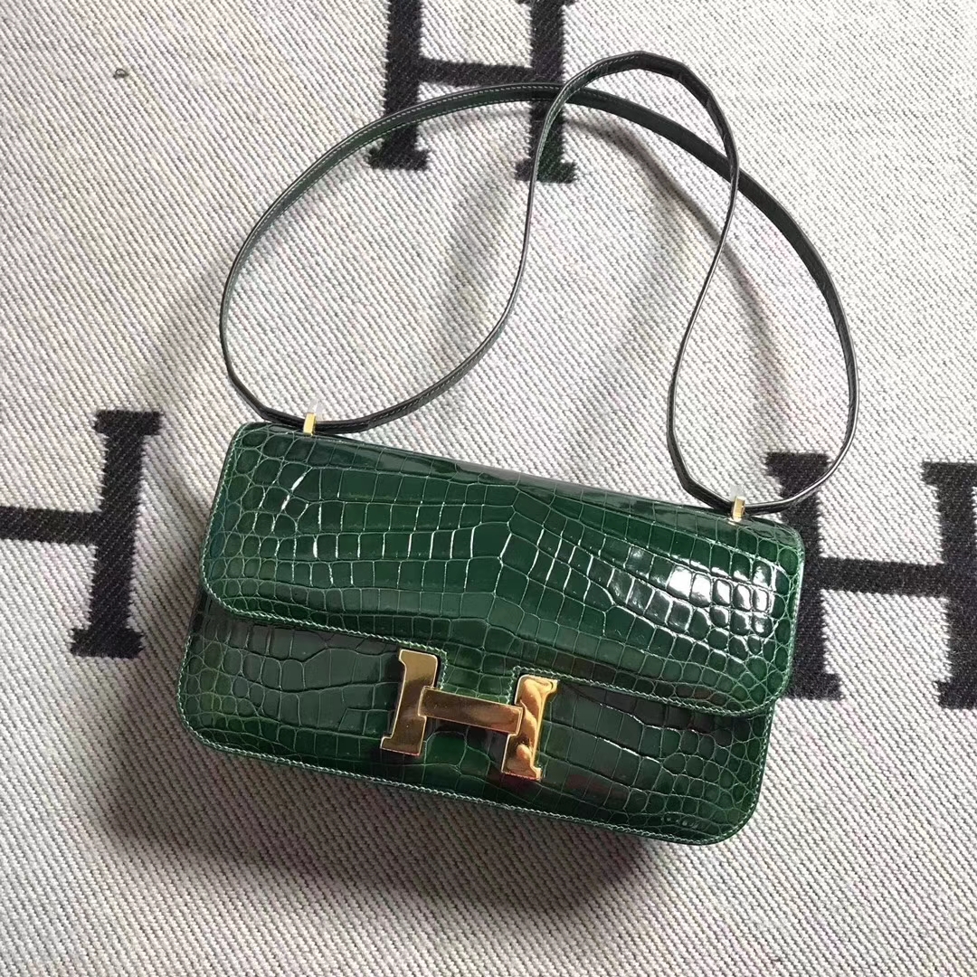 Hermès(爱马仕)Constance 空姐包 亮面小康 银扣 祖母绿 26cm
