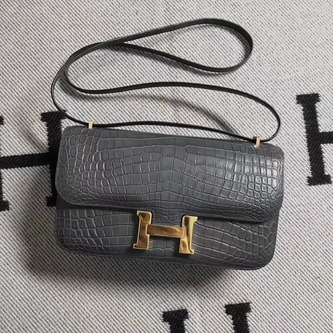 Hermès(爱马仕)雾面鳄鱼两点 小康26cm 铁灰色