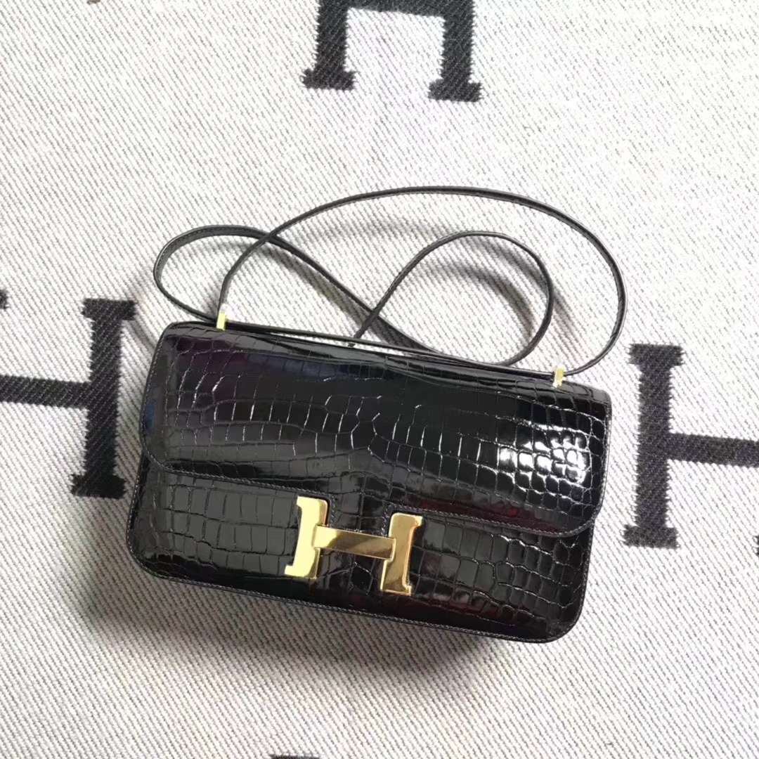 Hermès(爱马仕)Constance 空姐包 极品亮面鳄鱼 小康elan 经典黑金百搭 26cm