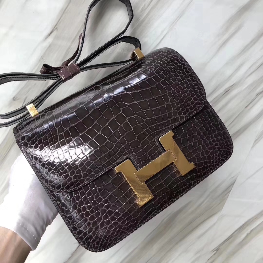 Constance 24 Constance 空姐包 Hermès(爱马仕)Constance24cm Alligator shiny 亮面鳄鱼 ck89 黑色 noir 金扣 现货 2019年5月21日 0
