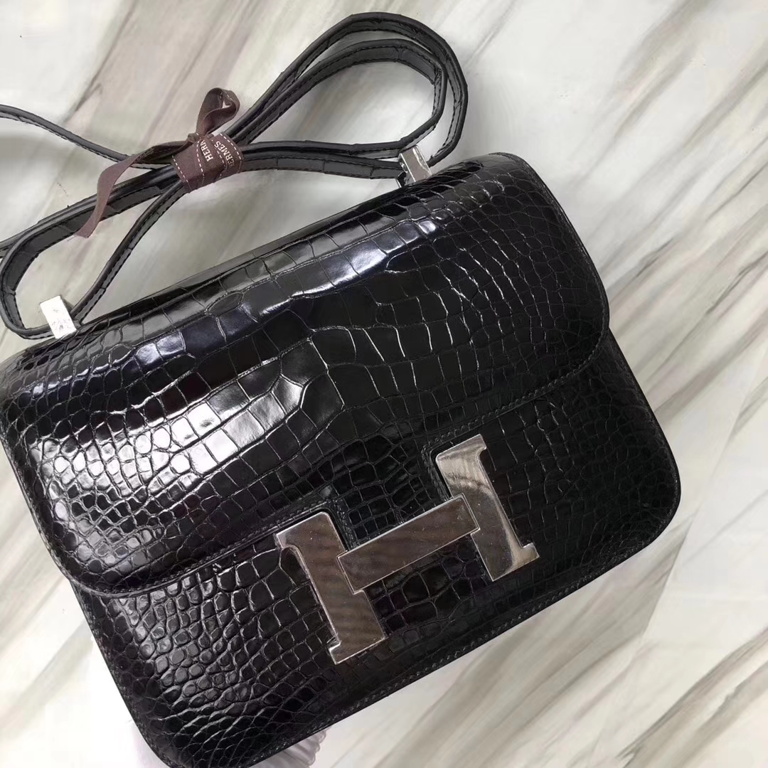 Constance 24 Constance 空姐包 Hermès(爱马仕)Constance24cm Alligator shiny 亮面鳄鱼 ck89 黑色 noir 银扣 现货 2019年5月21日 0