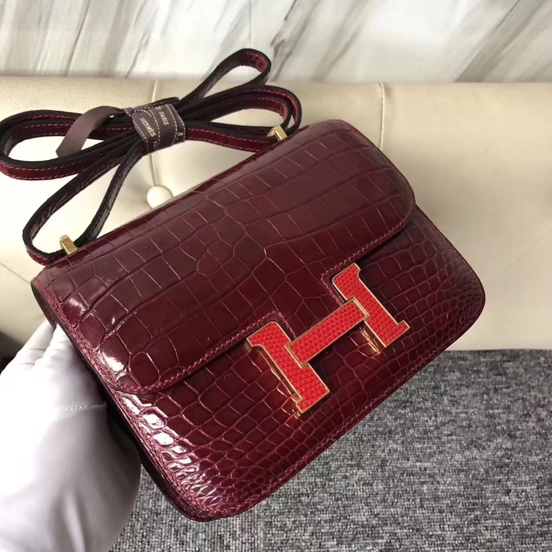 Constance 18 Constance 空姐包 Hermès(爱马仕)Constance空姐包 Crocodile shiny 亮面鳄鱼 F5 勃艮第酒红 蜥蜴扣 金扣 18cm 2019年6月13日 0