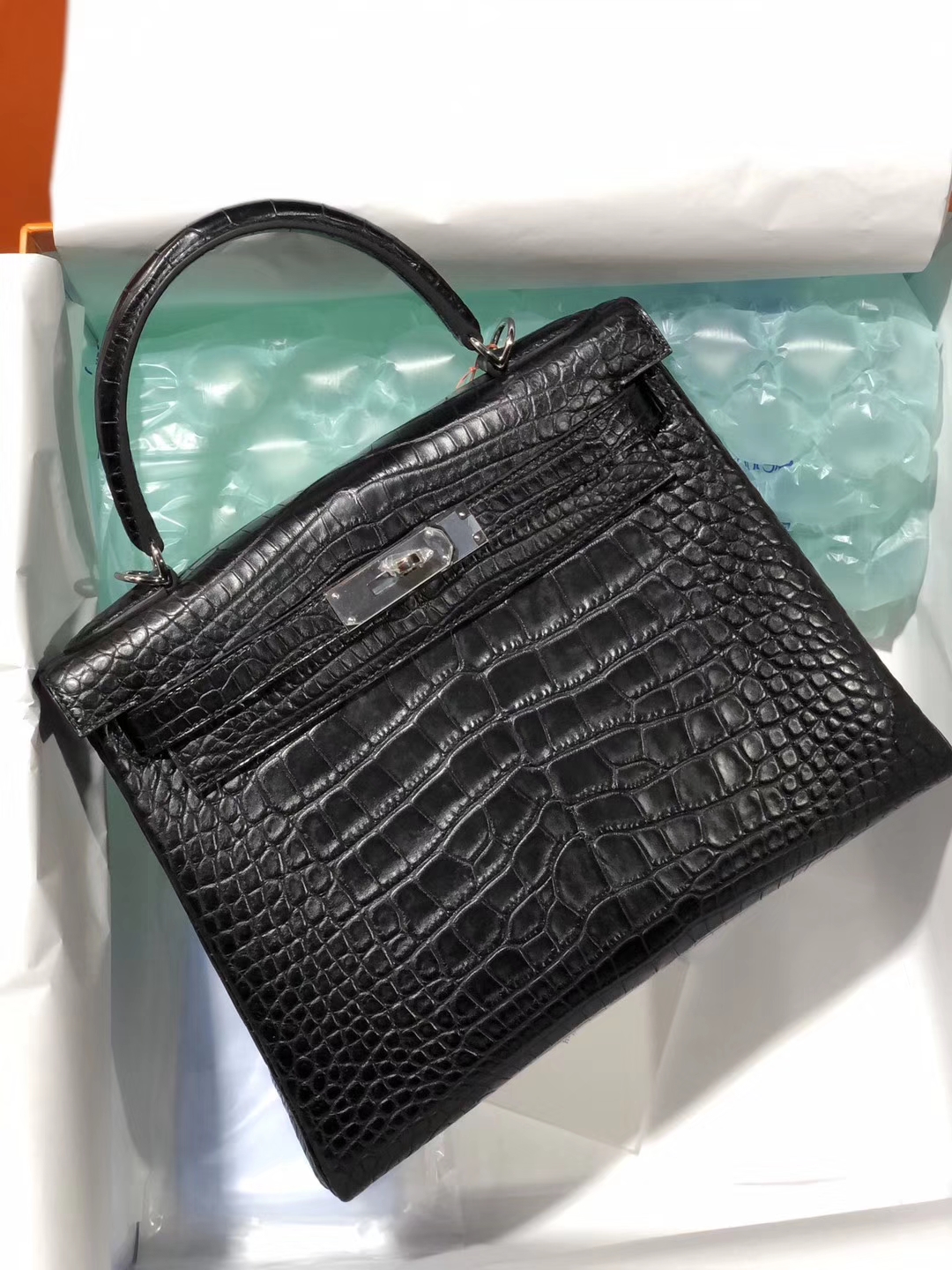 Kelly 28 Kelly 凯莉包 Niloticus 尼罗鳄 皮料 Hermès(爱马仕)Kelly 28cm Crocodile matt 雾面鳄鱼 巧克力色 咖啡色 银扣 顶级手缝 2020年4月25日 0