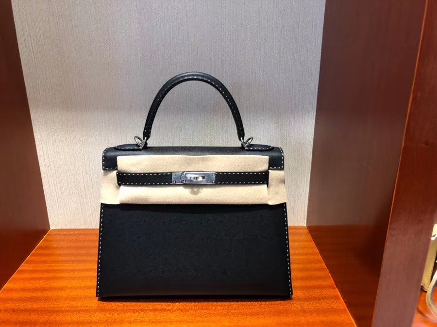 Kelly 28 Kelly 凯莉包 Hermès(爱马仕)限量款 Kelly 新皮种 Graine Monsieur ck89 黑色 Noir 银扣 黑白双线 外缝 28cm 2020年5月16日 0