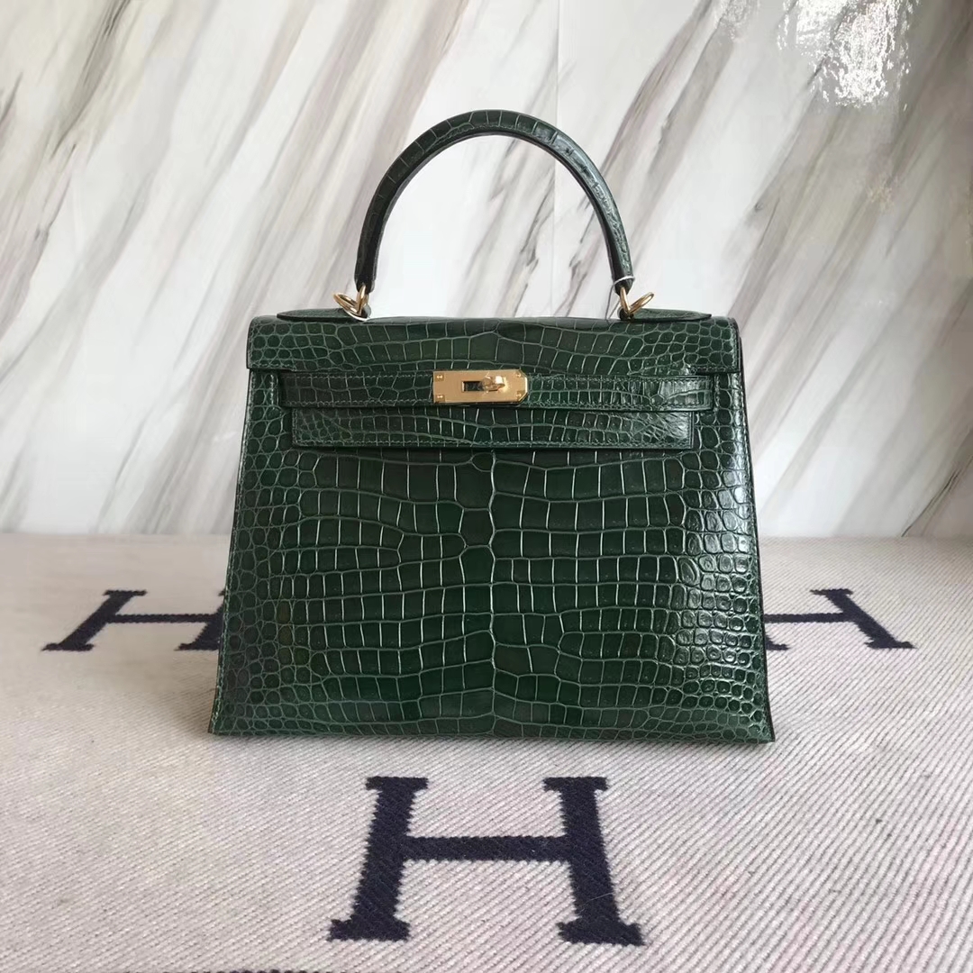 Kelly 28 Kelly 凯莉包 Hermès(爱马仕)Kelly28cm shiny porosus crocodile 澳洲湾鳄 ck67祖母绿 顶级工艺 全手工蜜蜡线缝 金扣 2018年12月7日 0