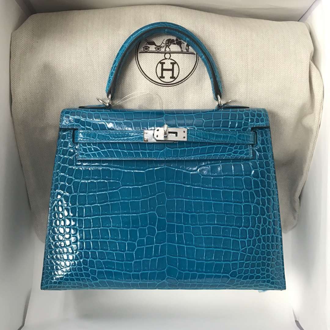 Kelly 25 Kelly 凯莉包 Hermès(爱马仕)Kelly shiny alligator crocodile 亮面框框鳄鱼 ck81斑鸠灰拼6Q翡翠绿 25cm 2018年12月23日 0