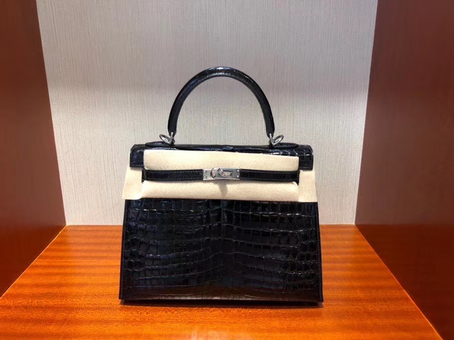 Kelly 25 Kelly 凯莉包 Niloticus 尼罗鳄 Hermès(爱马仕)Kelly 25cm Crocodile shiny 亮面鳄鱼ck89 黑色 Noir 银扣 现货 2020年5月19日 0