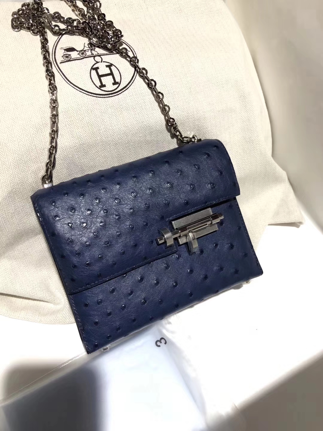Hermès(爱马仕)Verrou ostrich kk鸵鸟 ck73宝石蓝 顶级工艺 蜡线全手工 银扣 17cm