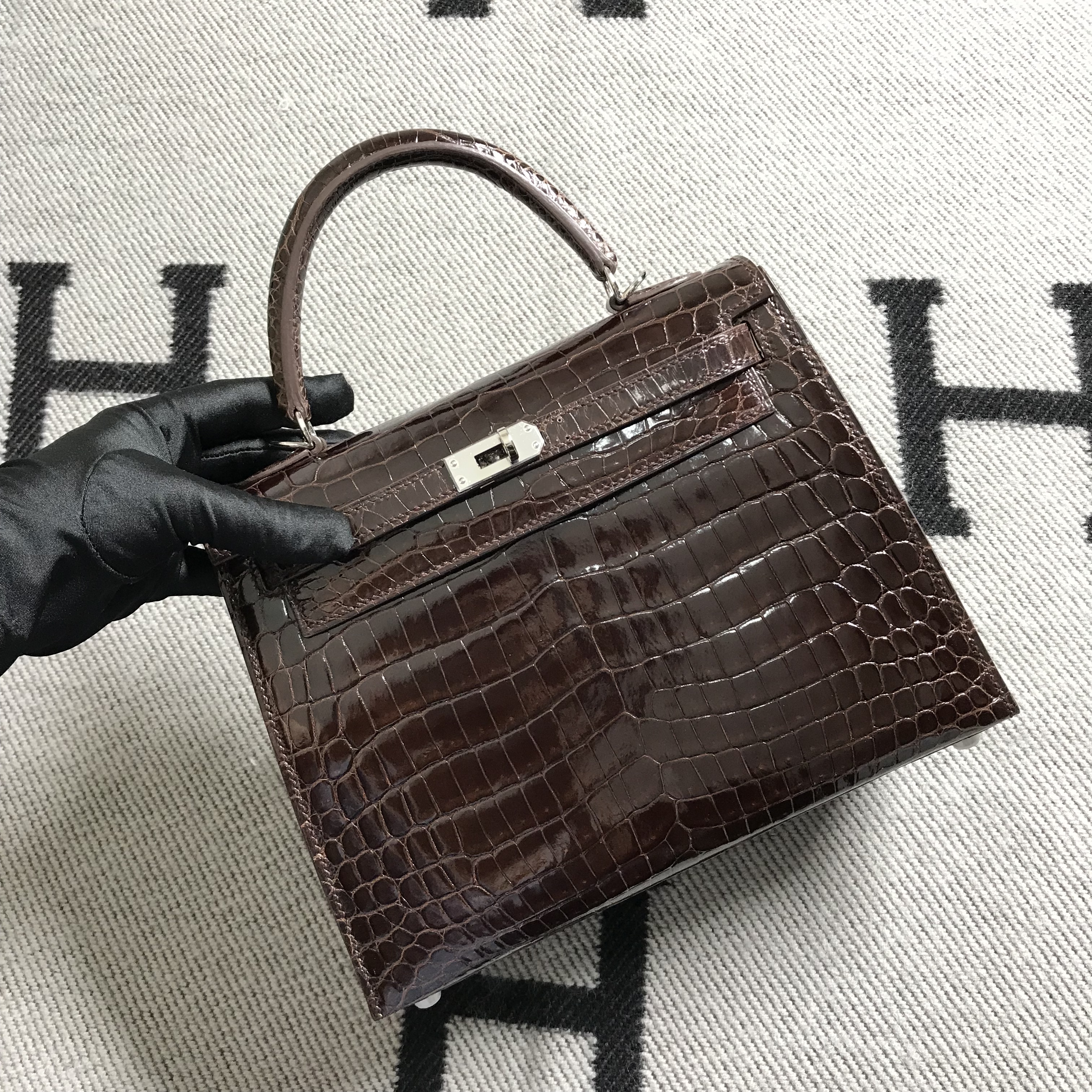 爱马仕 亮面鳄鱼 凯莉包