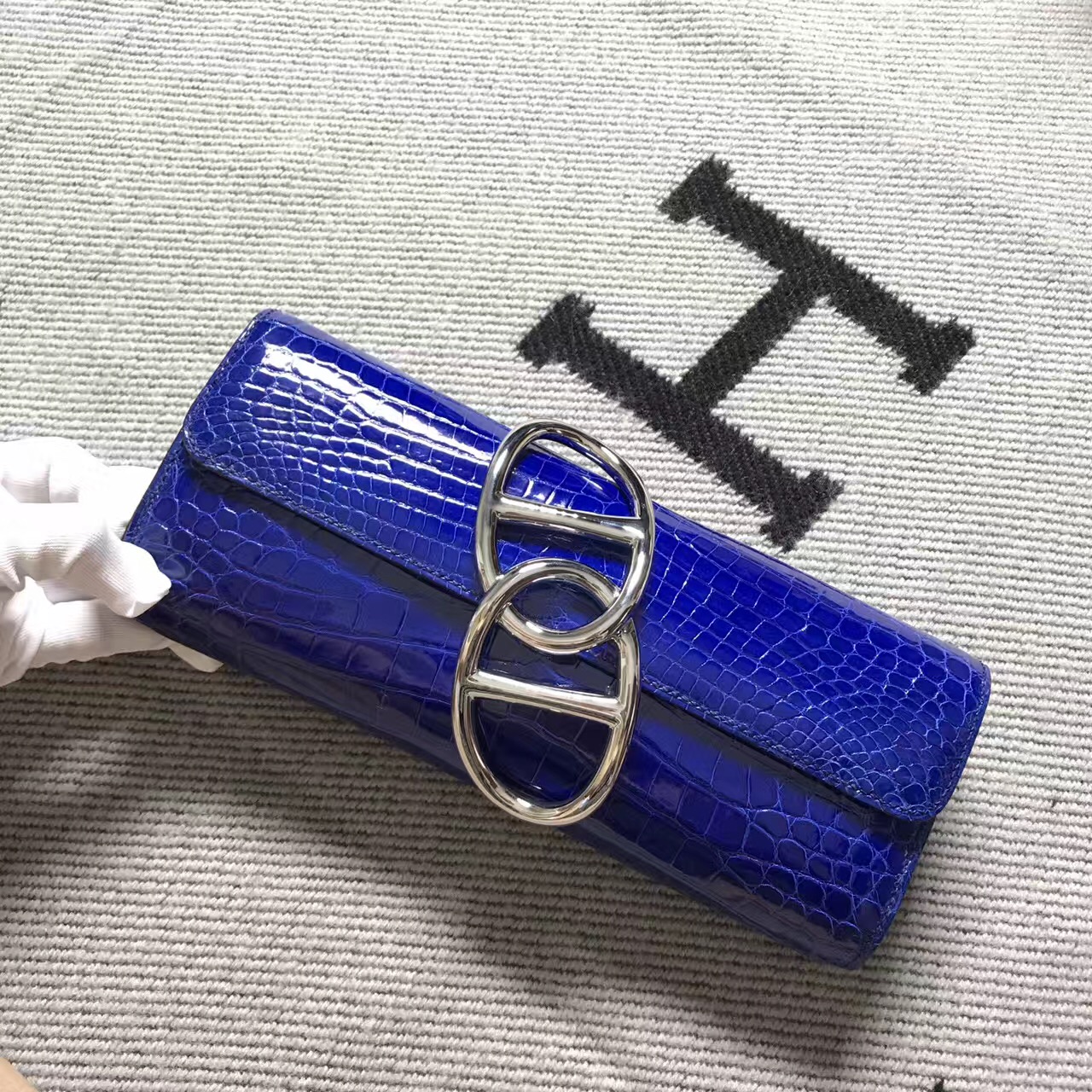 Hermès(爱马仕)猪鼻手包egee 鳄鱼亚光 电光蓝 银扣