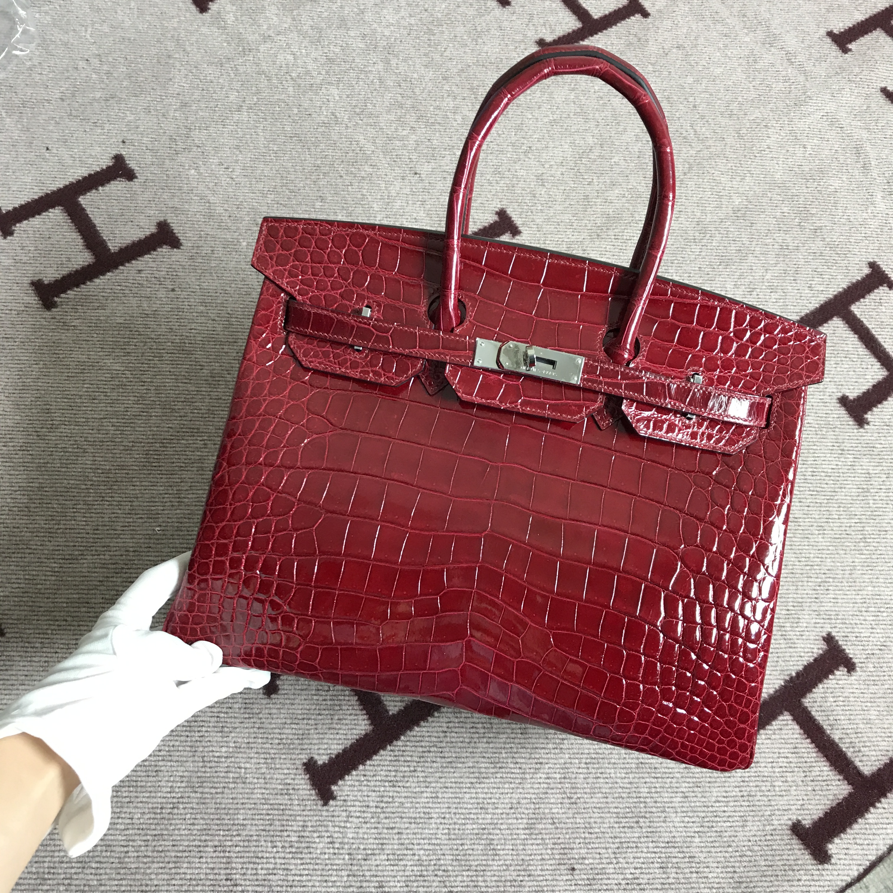 爱马仕 亮面鳄鱼 铂金包