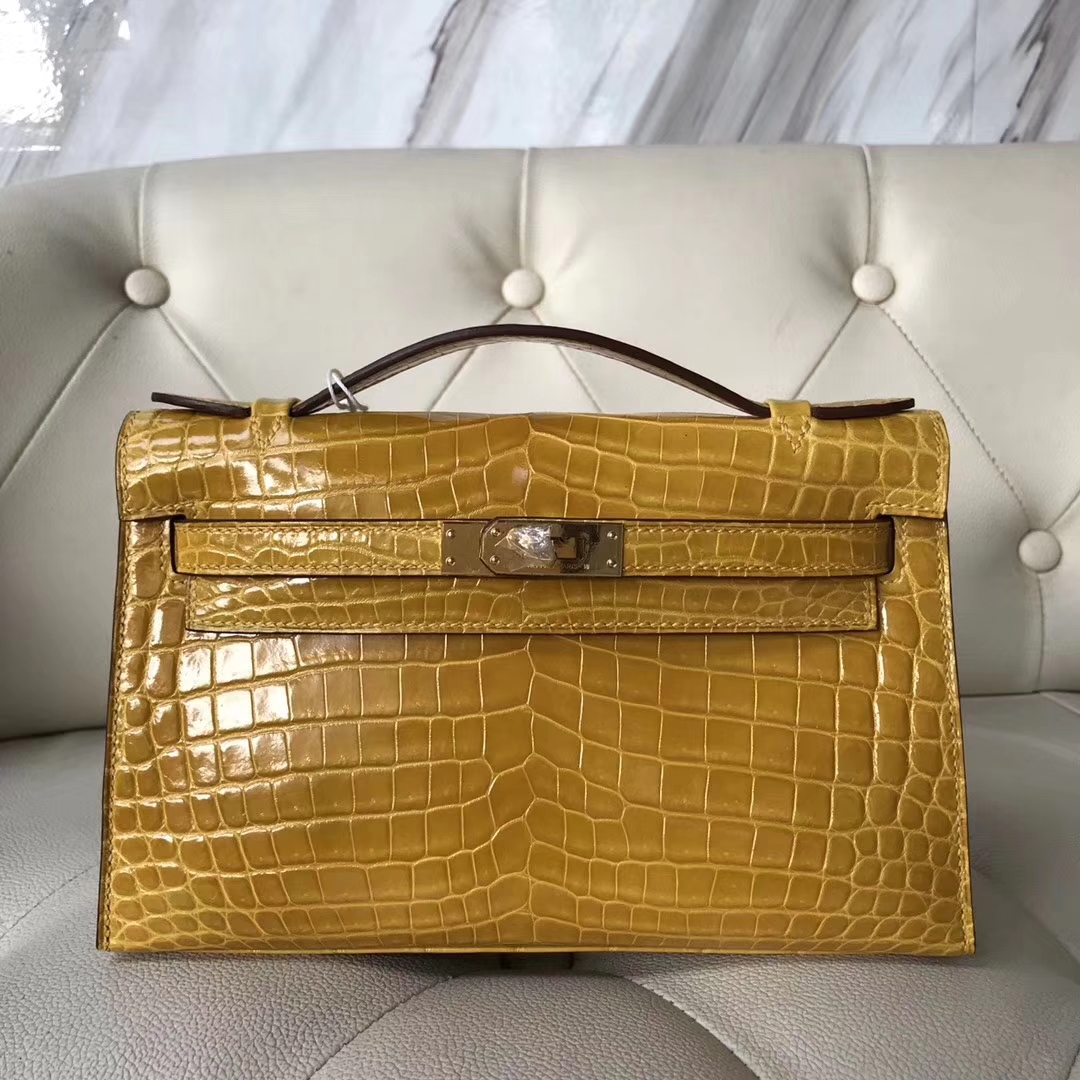 Mini Kelly 1 Mini Kelly 迷你凯莉 Hermès(爱马仕)Minikelly pochette Alligator shiny 亮面鳄鱼9D 琥珀黄 Ambre 金扣 2018年10月28日 0