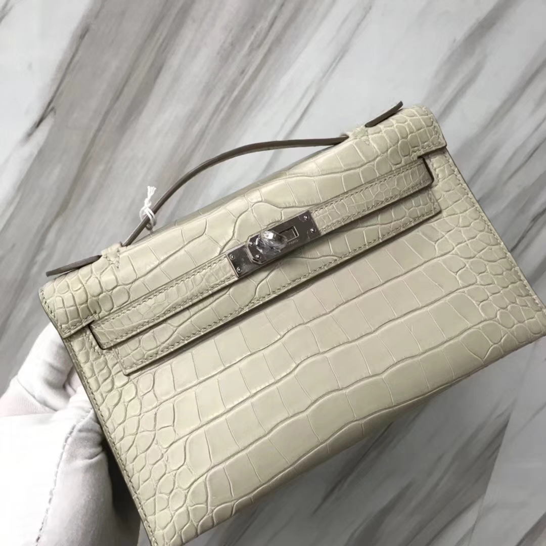 Mini Kelly 1 Mini Kelly 迷你凯莉 Hermès(爱马仕)Minikelly pochette 雾面鳄鱼 8L 奶油白 beton 银扣 手拿包 晚宴包 22cm 2019年1月19日 0