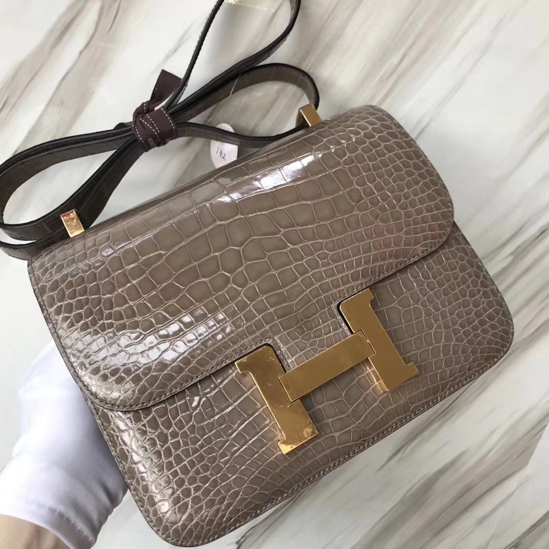 Constance 24 Constance 空姐包 Hermès(爱马仕)Constance空姐包 Alligator shiny 亮面鳄鱼 ck81 斑鸠灰 金扣 顶级手缝 24cm 2019年4月19日 0