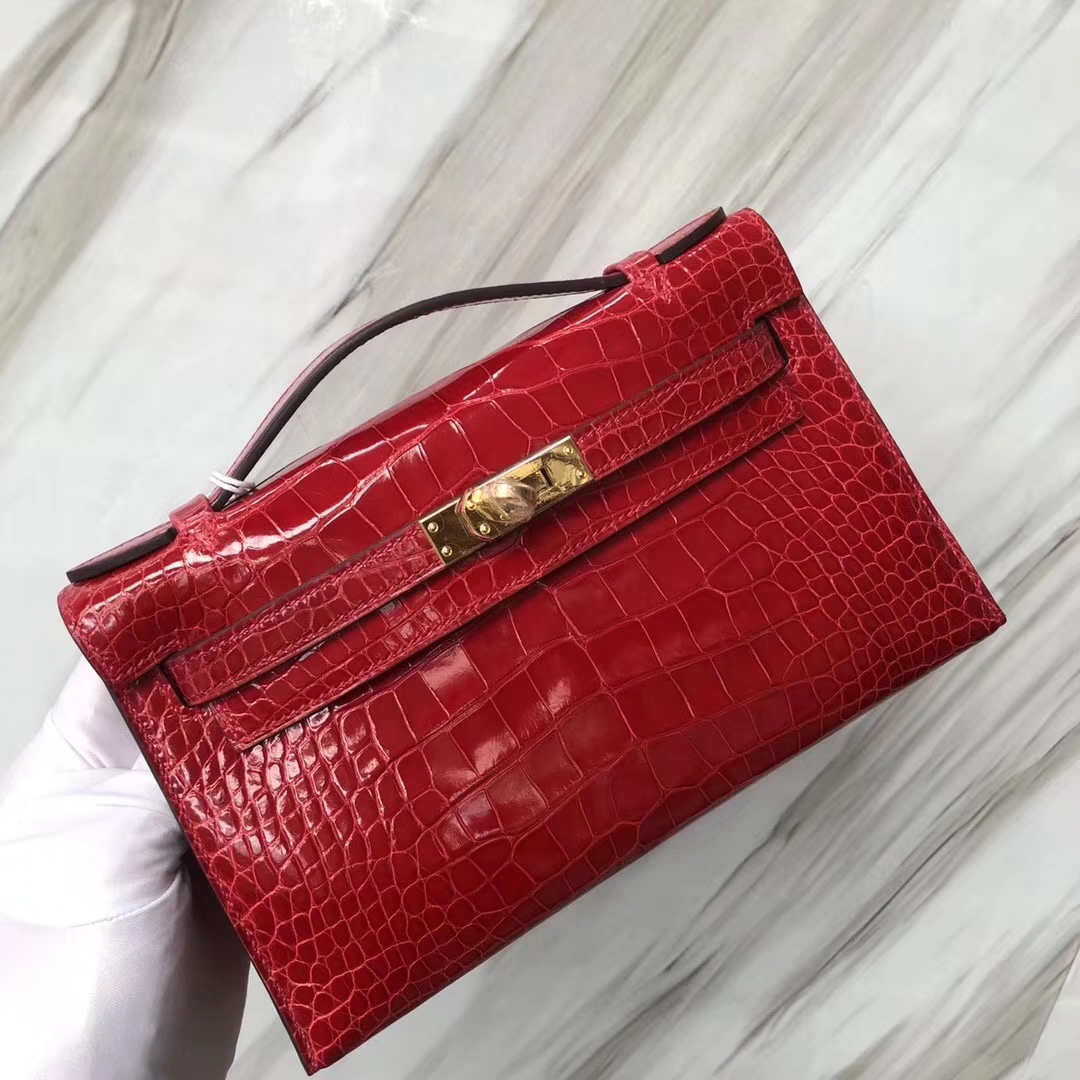 Mini Kelly 1 Mini Kelly 迷你凯莉 Hermès(爱马仕) Minikelly pochette Alligator shiny 亮面鳄鱼 CK95 法拉利红 Braise 金扣 手拿包 晚宴包 22cm 2019年4月25日 0