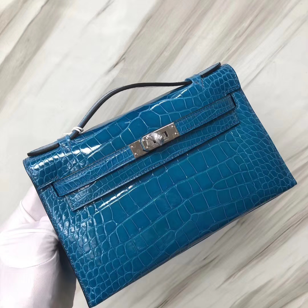 Mini Kelly 1 Mini Kelly 迷你凯莉 Hermès(爱马仕) Minikelly pochette Alligator shiny 亮面鳄鱼 7W 伊兹密尔蓝 银扣 手拿包 晚宴包 22cm 2019年4月25日 0