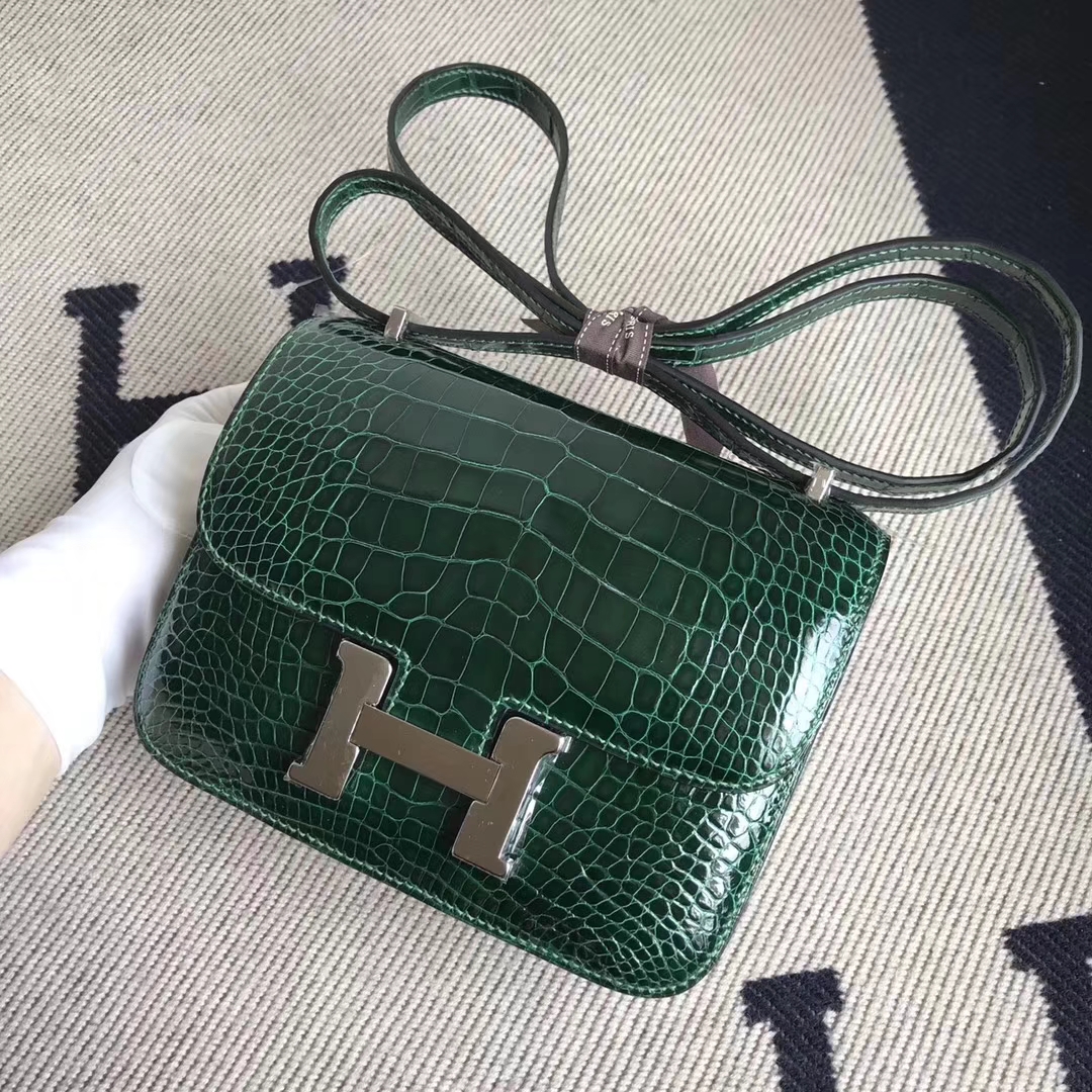 Constance 18 Constance 空姐包 Hermès(爱马仕)Constance空姐包 Alligator shiny 亮面鳄鱼 ck67 祖母绿 银扣 顶级现货 18cm 2019年4月19日 0